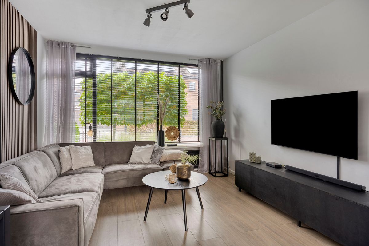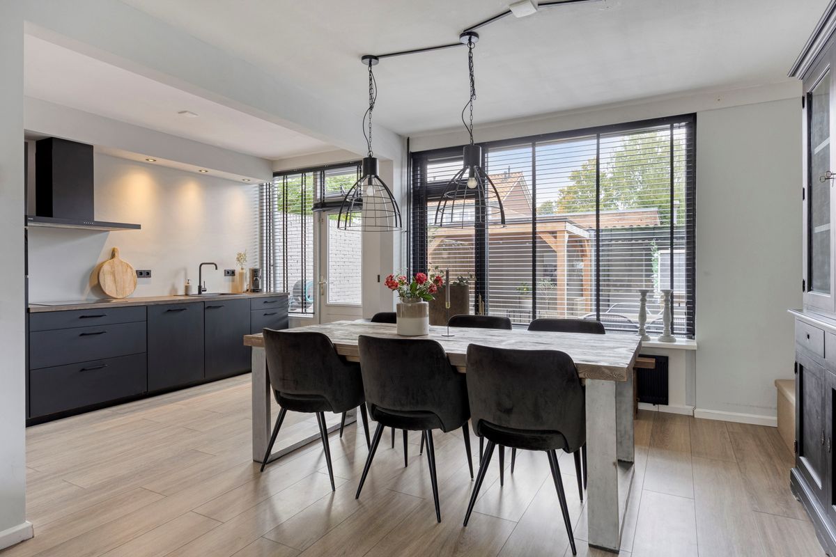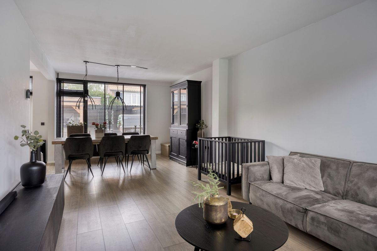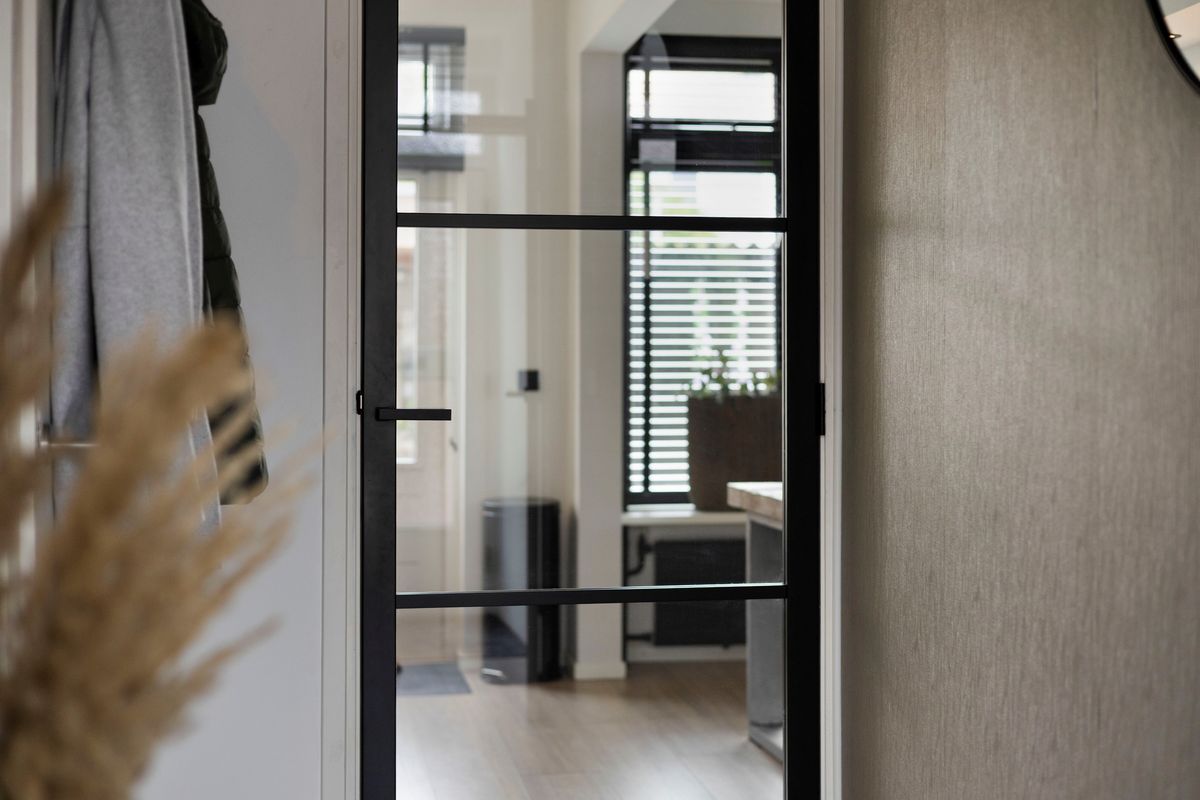 Via de entree met portaal stap je de hal in, waar je de meterkast, trapkast en toiletruimte met zwevend toilet vindt. De woonkamer is ruim en strak afgewerkt met glad gestucte wanden en plafond. Aan de straatzijde bevindt zich het zitgedeelte met prettig lichtinval; aan de tuinzijde is ruimte voor een grote eettafel. De open keuken is in 2022 vernieuwd en voorzien van een moderne inbouwkeuken met apparatuur. Dankzij de doorbraak naar de woonkamer is er een mooie open ruimte ontstaan, waardoor de begane grond licht en ruimtelijk aanvoelt.
