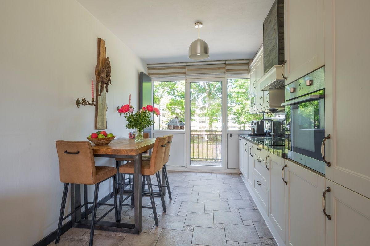 Denk aan ruimte, licht en vooral veel mogelijkheden. Met een woonoppervlakte van maar liefst 166 m², vier slaapkamers, twee woonkamers, twee keukens, meerdere badkamers én een zelfstandige studio op de begane grond met eigen entree, is dit een huis dat met je meegroeit. Ideaal voor dubbele bewoning, een praktijk aan huis, thuiswerken of een kind dat graag zelfstandiger woont, hier kan het allemaal. En parkeren? Dat doe je gewoon op je eigen terrein, direct voor de deur. Aan de achterzijde kijk je uit op een groen en open plantsoen. Dit uitzicht zorgt voor een gevoel van ruimte en rust, alsof je elke dag een beetje vakantie viert. Extra fijn is dat het balkon aan de achterzijde is verbreed, zodat je hier nog meer van die rustgevende omgeving kunt genieten. En wil je juist het levendige straatbeeld in je opnemen? Dan is er ook een balkon aan de voorzijde. Alles wat je nodig hebt ligt op loop- en fietsafstand: basisscholen, kinderopvang, het station, supermarkt, sportclubs en gezellige eetgelegenheden. En als je de natuur in wilt: binnen een paar minuten fiets je de Soester Duinen in. Ook de bereikbaarheid is dik in orde, via de A1 of A28 ben je zó in Amersfoort, Utrecht of Hilversum. Kortom: rust, ruimte én gemak komen hier mooi samen.