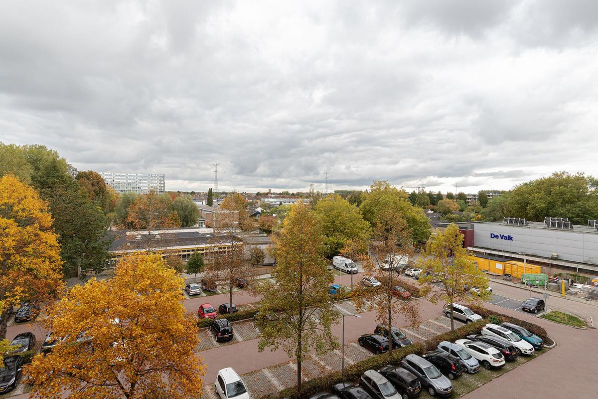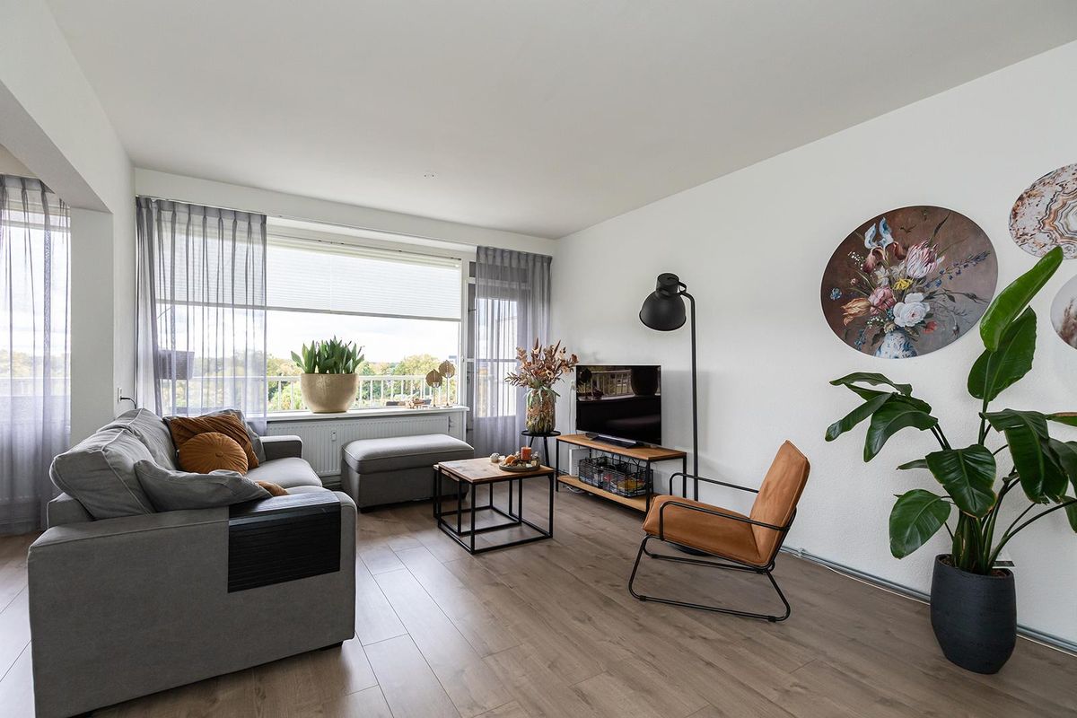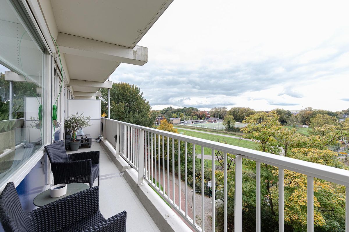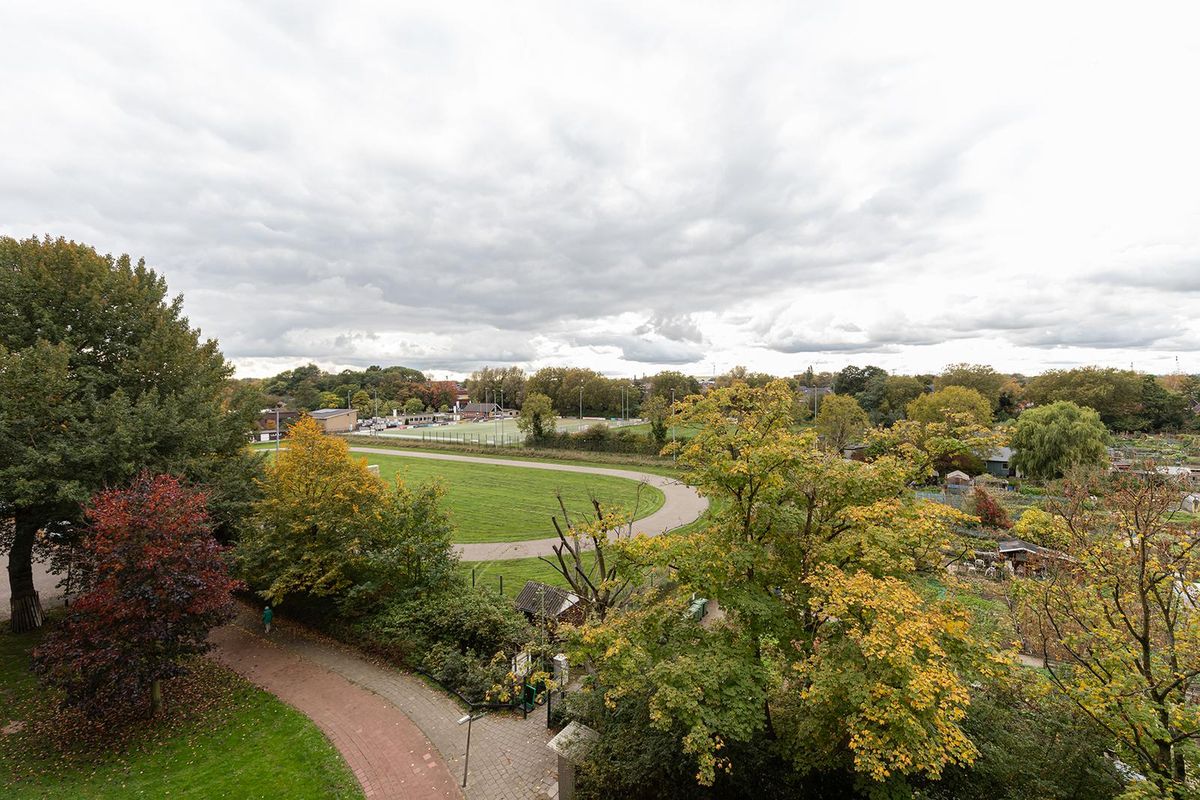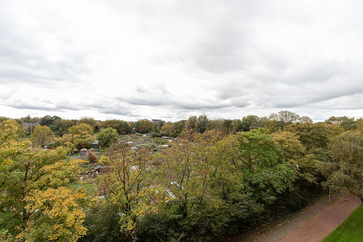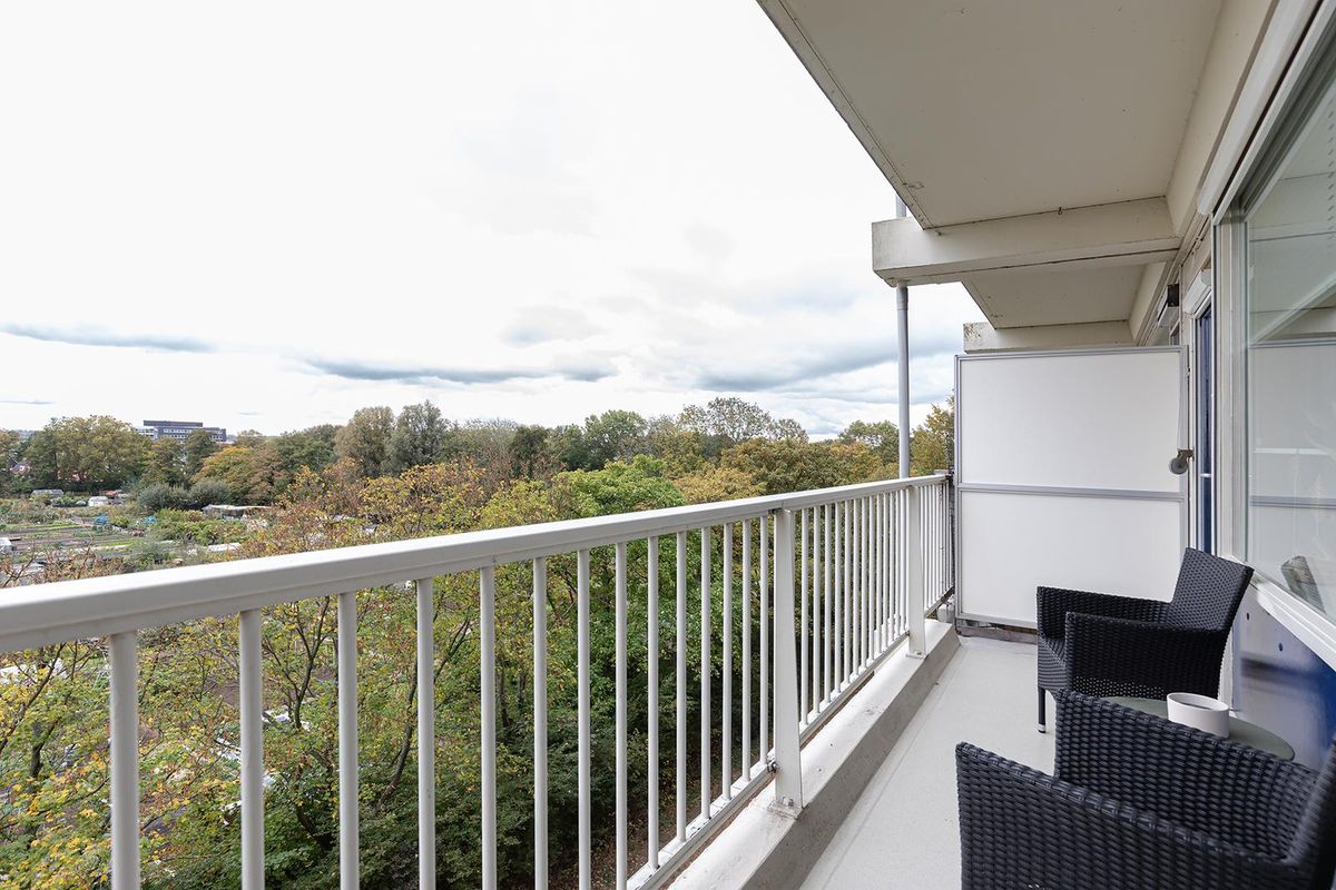 Op de vijfde verdieping van een verzorgd appartementencomplex in de rustige Vogelbuurt ligt dit ruime 4-kamerappartement met een heerlijk vrij uitzicht over groen. Dankzij de lift, het trappenhuis en de intercominstallatie is het gebouw goed toegankelijk en veilig.