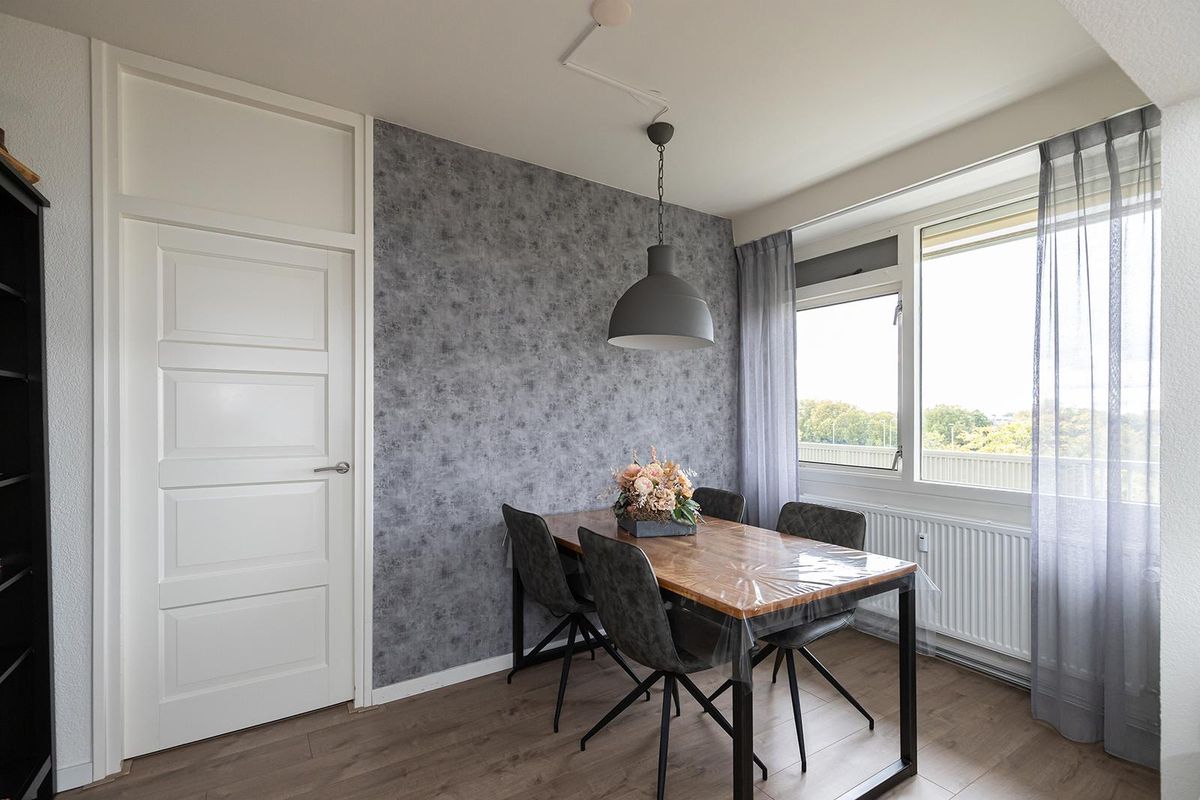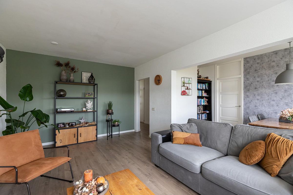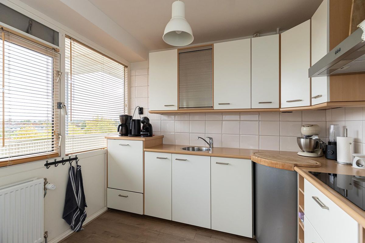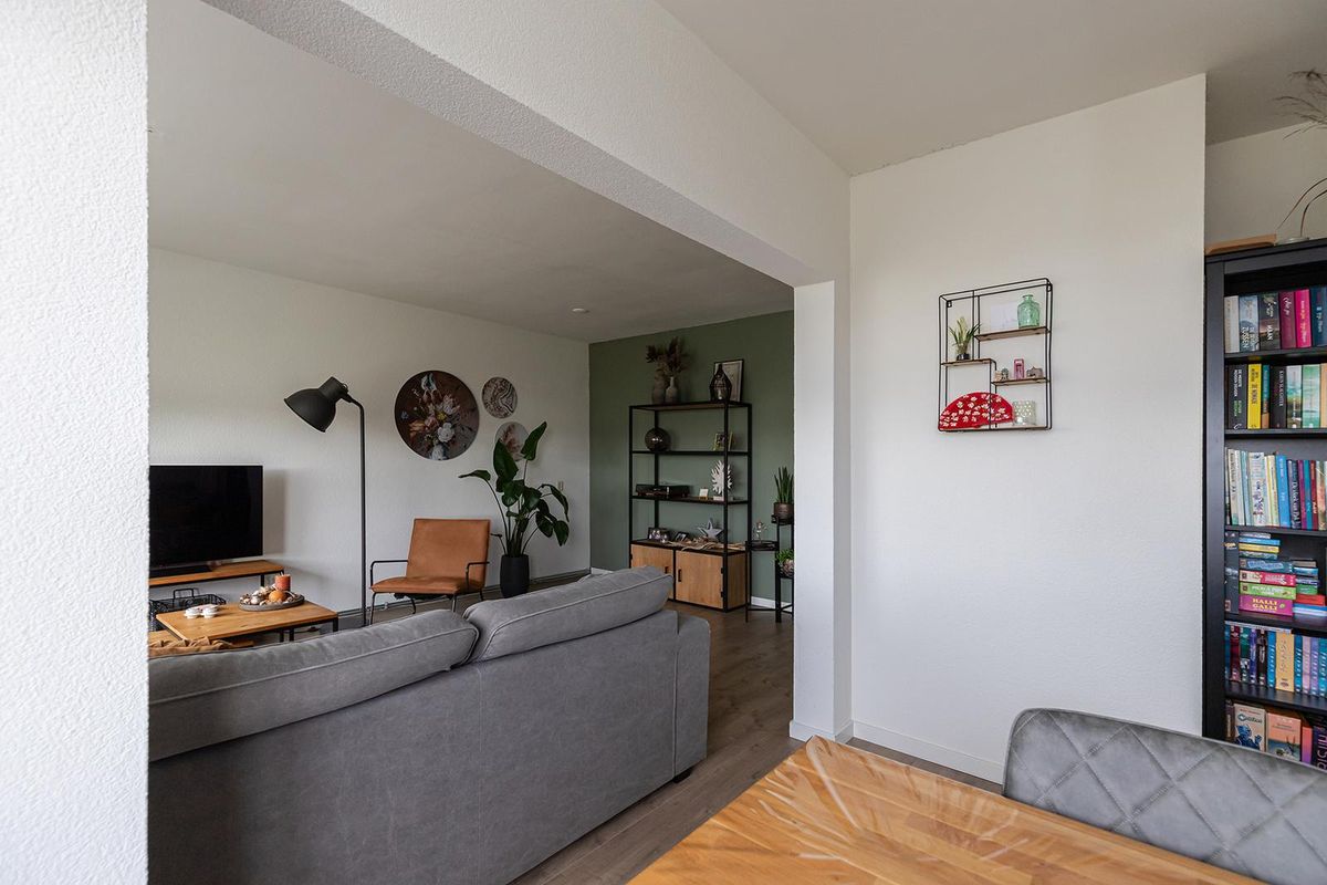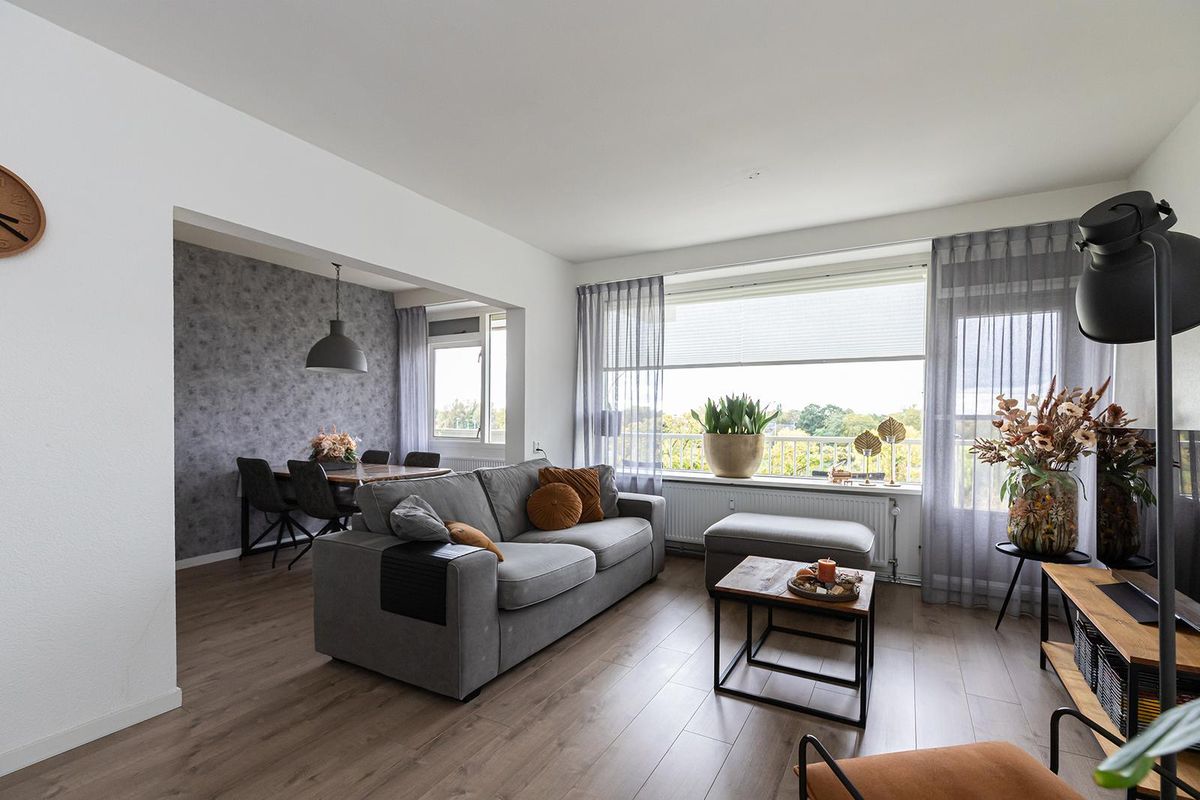 Binnen is het appartement verrassend ruim ingedeeld. Vanuit de hal heb je toegang tot vrijwel alle vertrekken. De lichte woonkamer heeft een open verbinding met de eetkamer (voormalige slaapkamer) en directe toegang tot het balkon op het westen. Hier kijk je vrij uit over een brede groenstrook – een uitzicht dat zorgt voor ruimte en rust, met tot laat in de avond zon.