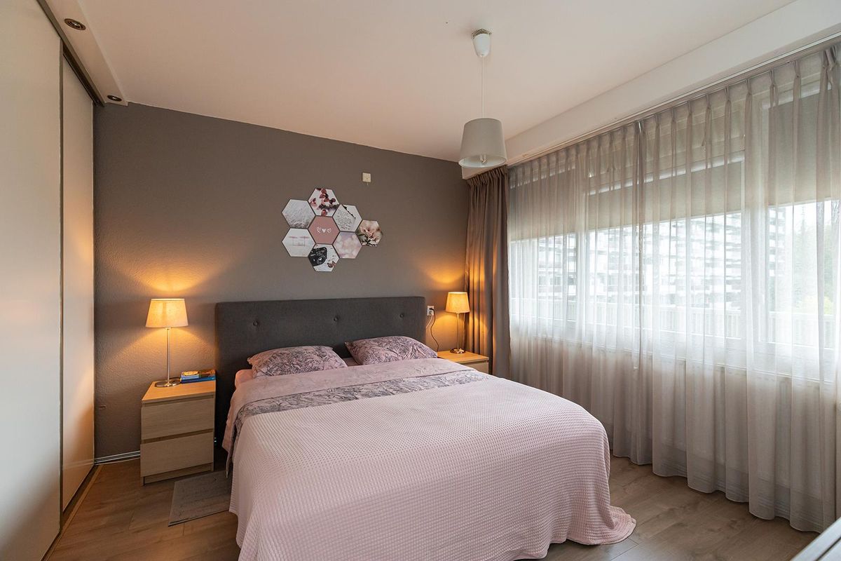 De twee slaapkamers beschikken over kamerbrede schuifkasten; één kamer heeft toegang tot het balkon.