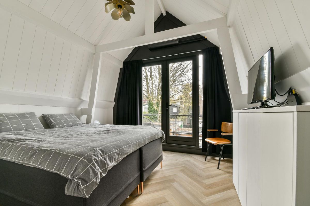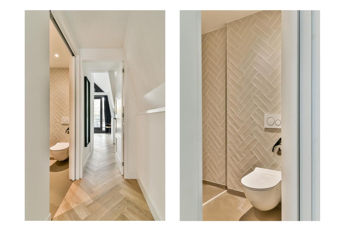 Overloop met toegang tot drie slaapkamers en de badkamer. Alle slaapkamers zijn voorzien van airconditioning en zijn -samen met de overloop- voorzien van een visgraat pvc-vloer. Twee slaapkamers liggen aan de voorzijde en zijn voorzien van glas-in-loodramen. Daarbij biedt de grootste slaapkamer toegang tot de bergvliering. De grootste slaapkamer ligt aan de achterzijde en beschikt over een grote vaste kast, hierin bevinden zich de cv-ketel (2021) en de mechanische ventilatie-unit (2021). Het mansardedak zorgt zowel van binnen als van buiten voor een karakteristieke uitstraling met hoge nok. Deze slaapkamer biedt via openslaande deuren toegang tot het terras, dat net als de tuin op het oosten ligt. Vanaf het terras is er een leuk uitzicht op de buurt. De badkamer is eveneens via de overloop toegankelijk en is modern afgewerkt. De badkamer beschikt over een inloopregendouche, een waskom met meubel en een tweede toilet (wandcloset). Het plafond is afgewerkt met inbouwspots. De gehele verdieping is voorzien van vloerverwarming.