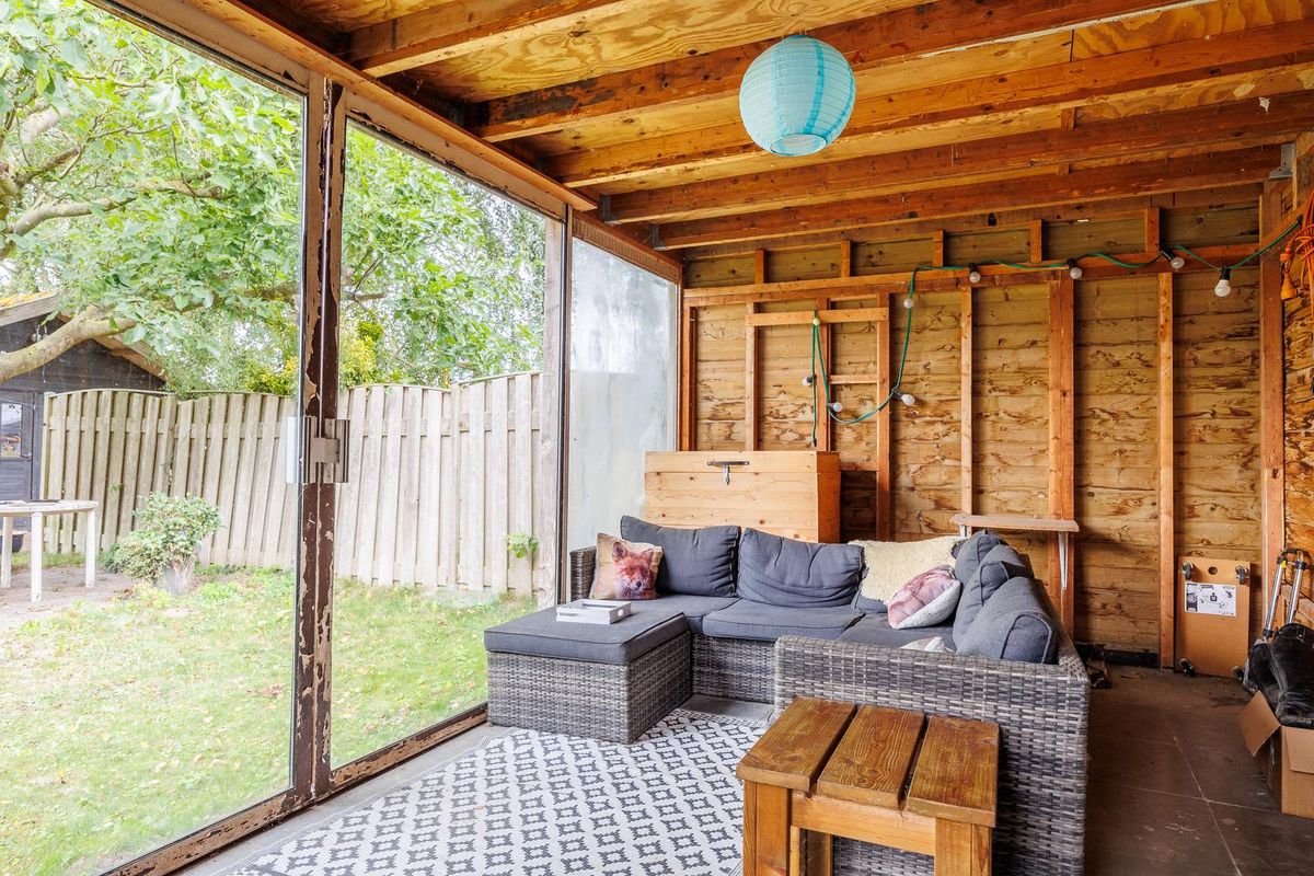 - Vanuit de keuken doorgang naar de aangebouwde houten serre/ veranda