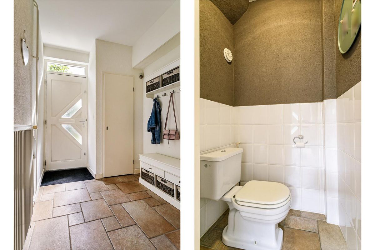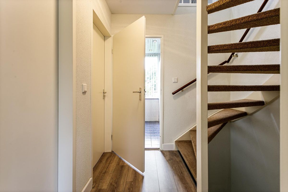 We betreden de woning via de hal, welkom! Er is hier genoeg ruimte om alle jassen en schoenen op te bergen. De hal geeft toegang tot de meterkast, het toilet, de trap richting de eerste verdieping en de deur naar de woonkamer.