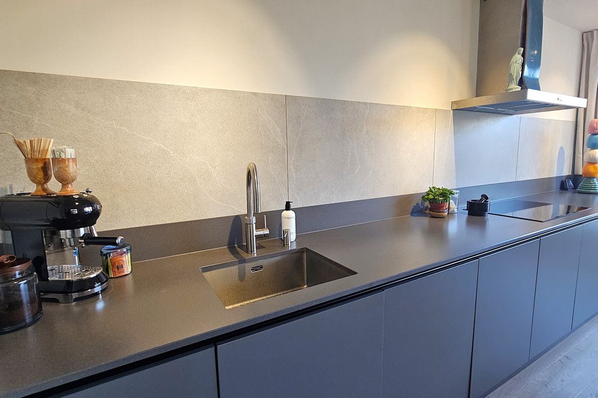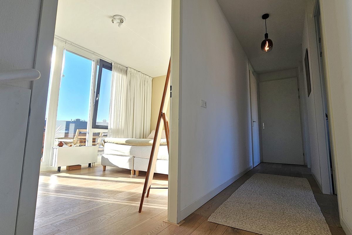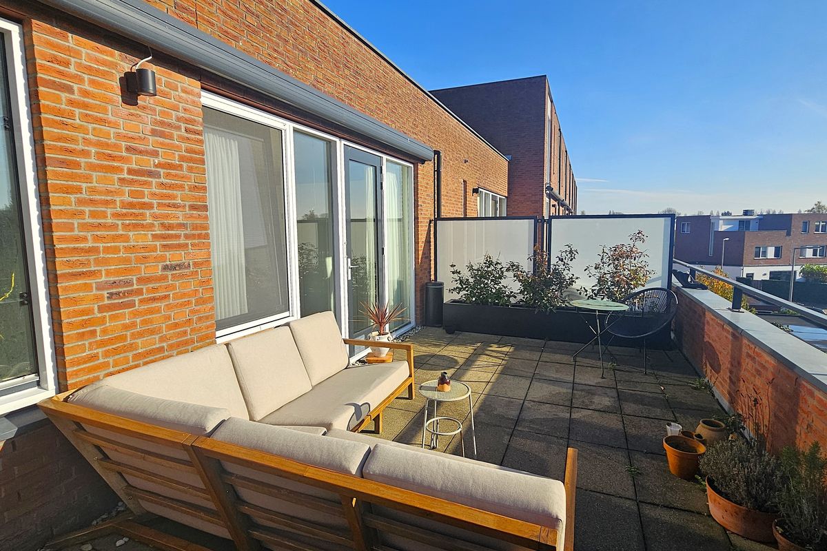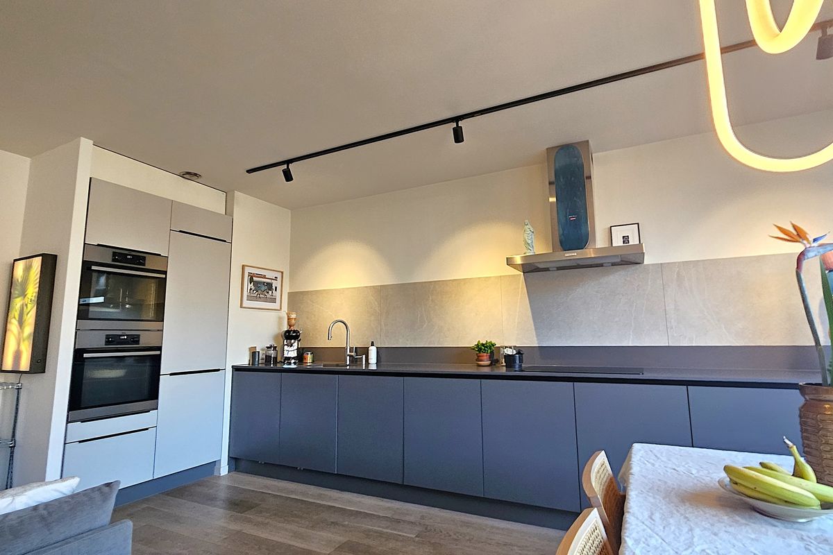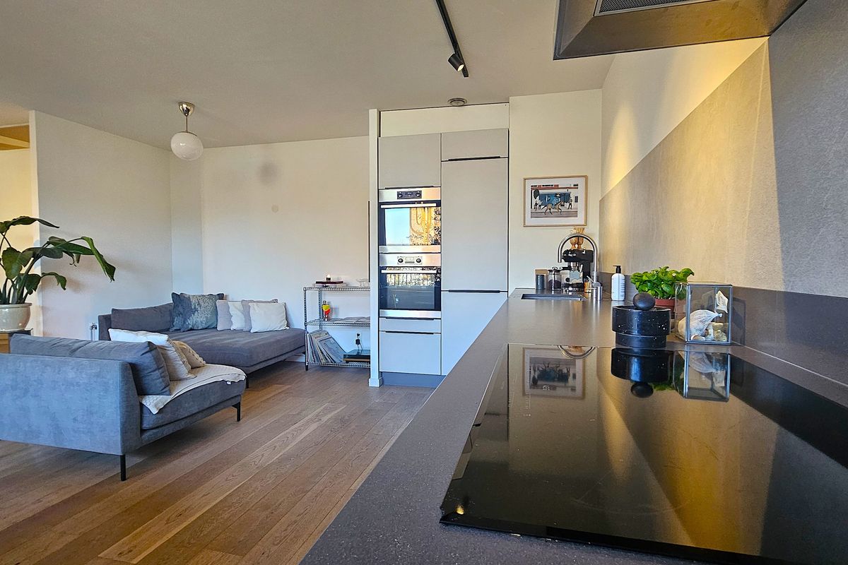 Het riante dakterras van ca. 27 m², gelegen op het Zuiden, is een absolute troef. Een heerlijke plek om te ontspannen, te werken of de dag in alle rust te beginnen. De lichte woonkamer met moderne open keuken vormt het hart van de woning. De combinatie van hoogwaardige afwerking, maatwerk kasten en ruime opzet geeft de woning een frisse, eigentijdse uitstraling.