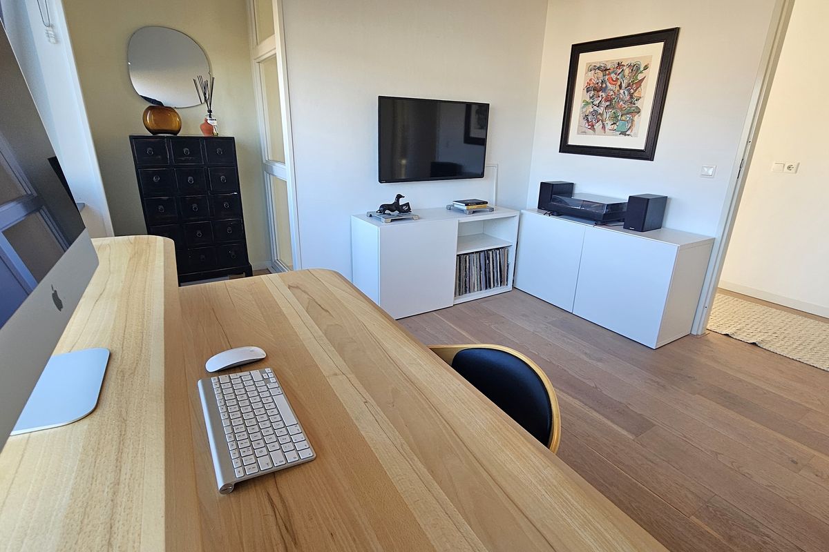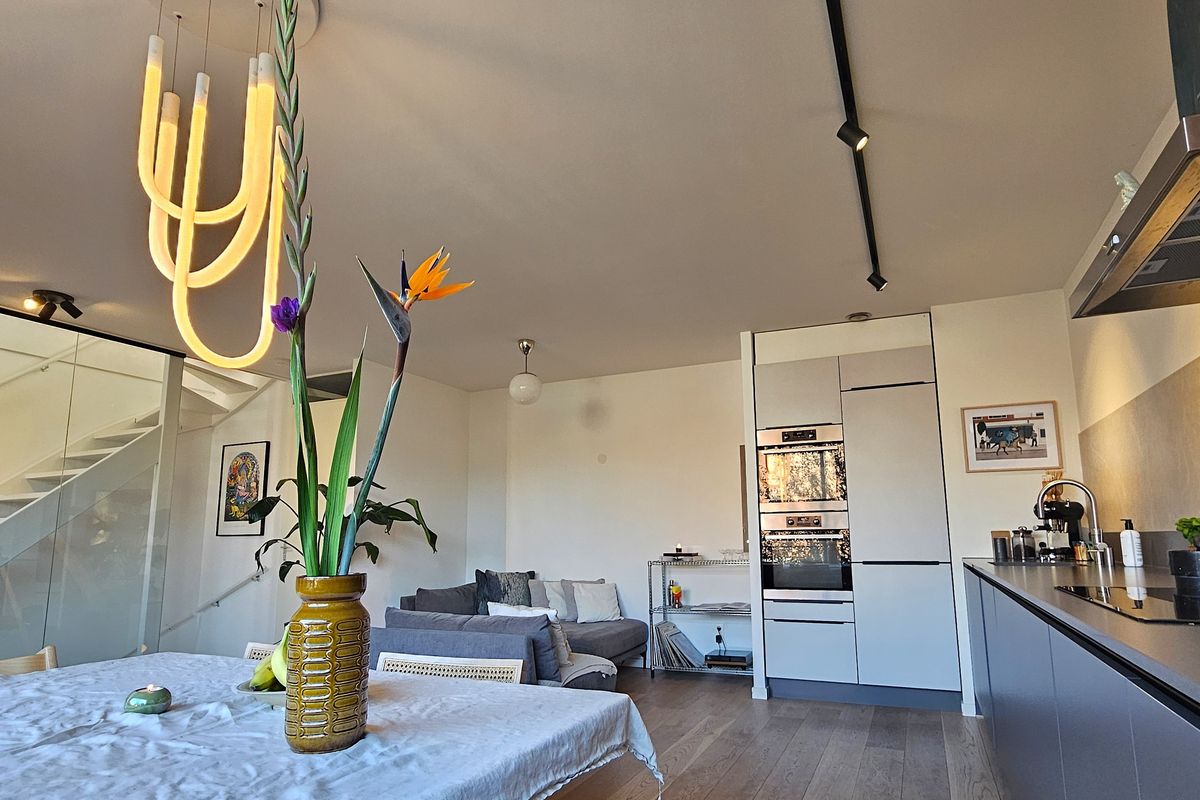 The spacious south-facing roof terrace of approximately 27 m² is a definite asset. A wonderful place to relax, work, or start the day in peace. The bright living room with a modern open-plan kitchen forms the heart of the home. The combination of high-quality finishes, custom cabinets, and spacious layout gives the home a fresh, contemporary feel.