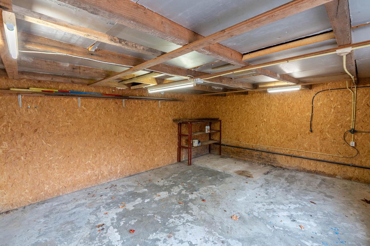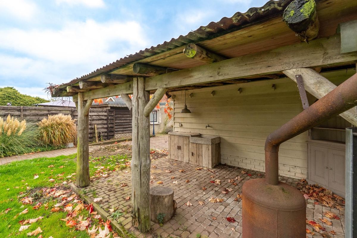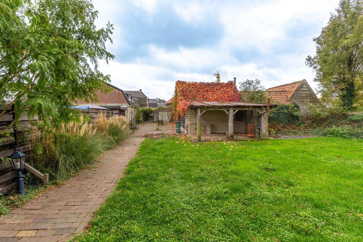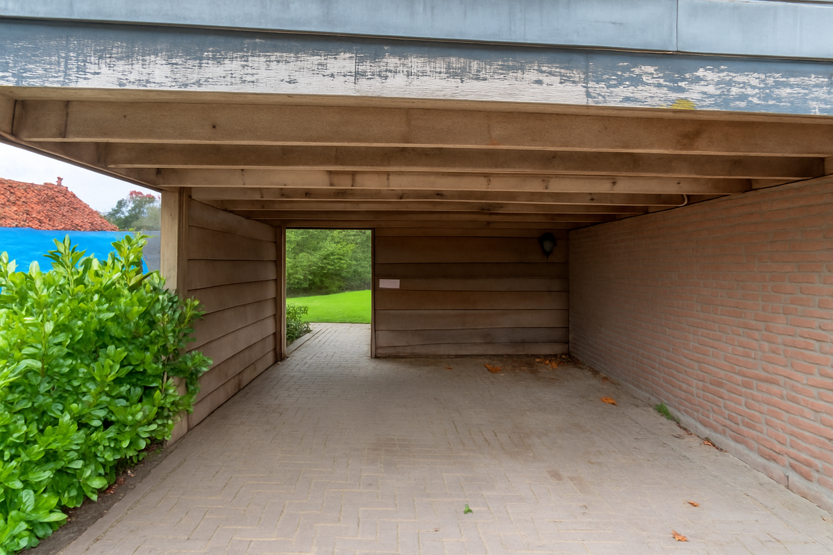 Achter de woning ligt een diepe tuin op het noorden, maar dankzij de lengte geniet je de hele dag van zon én schaduw. Achterin de tuin vind je een overkapping met plek voor een auto, een ruime berging, en een achterom voor extra gemak.