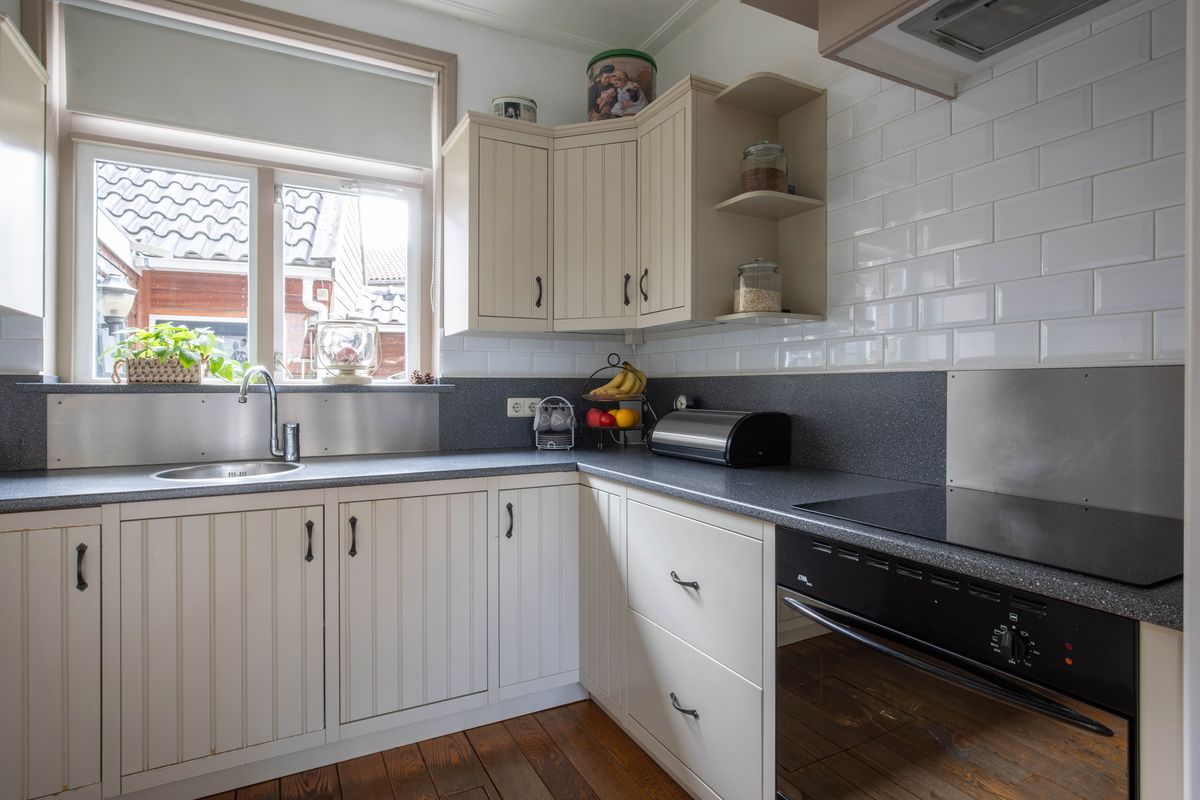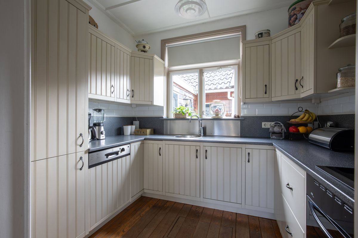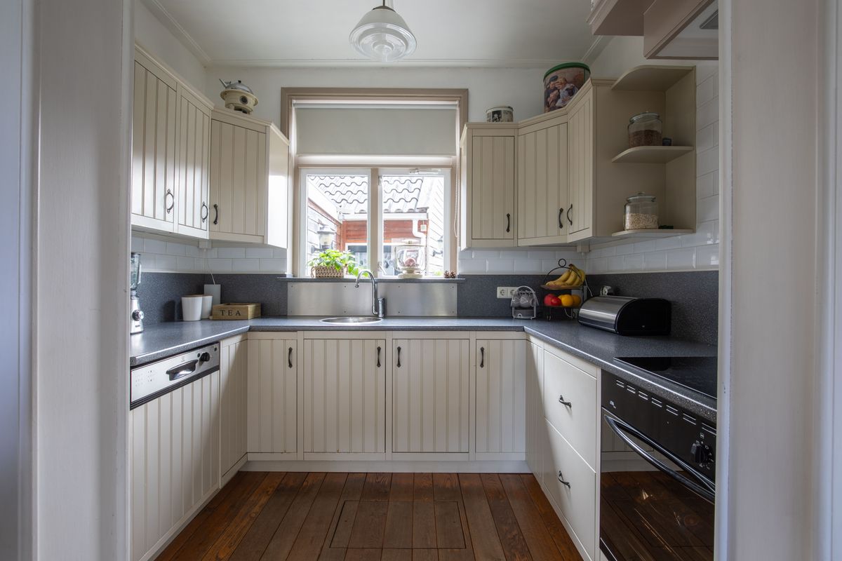 De keuken is gesitueerd aan de achterzijde en uitgerust met een inductiekookplaat, vaatwasser, koel-/vriescombinatie en oven. De woonkamer en keuken zijn afgewerkt met een houten vloer.