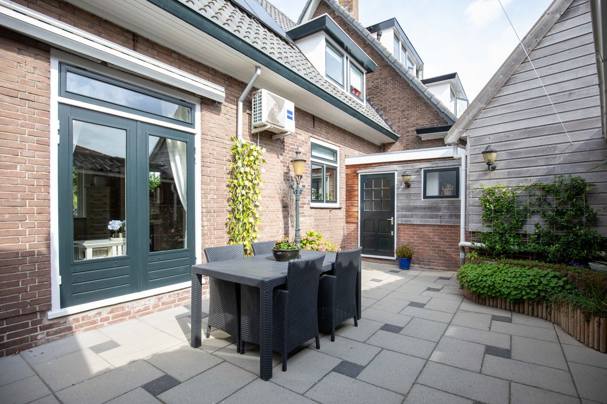 - Achtertuin op het zuidoosten met achterom, een overkapping en drie bergingen;