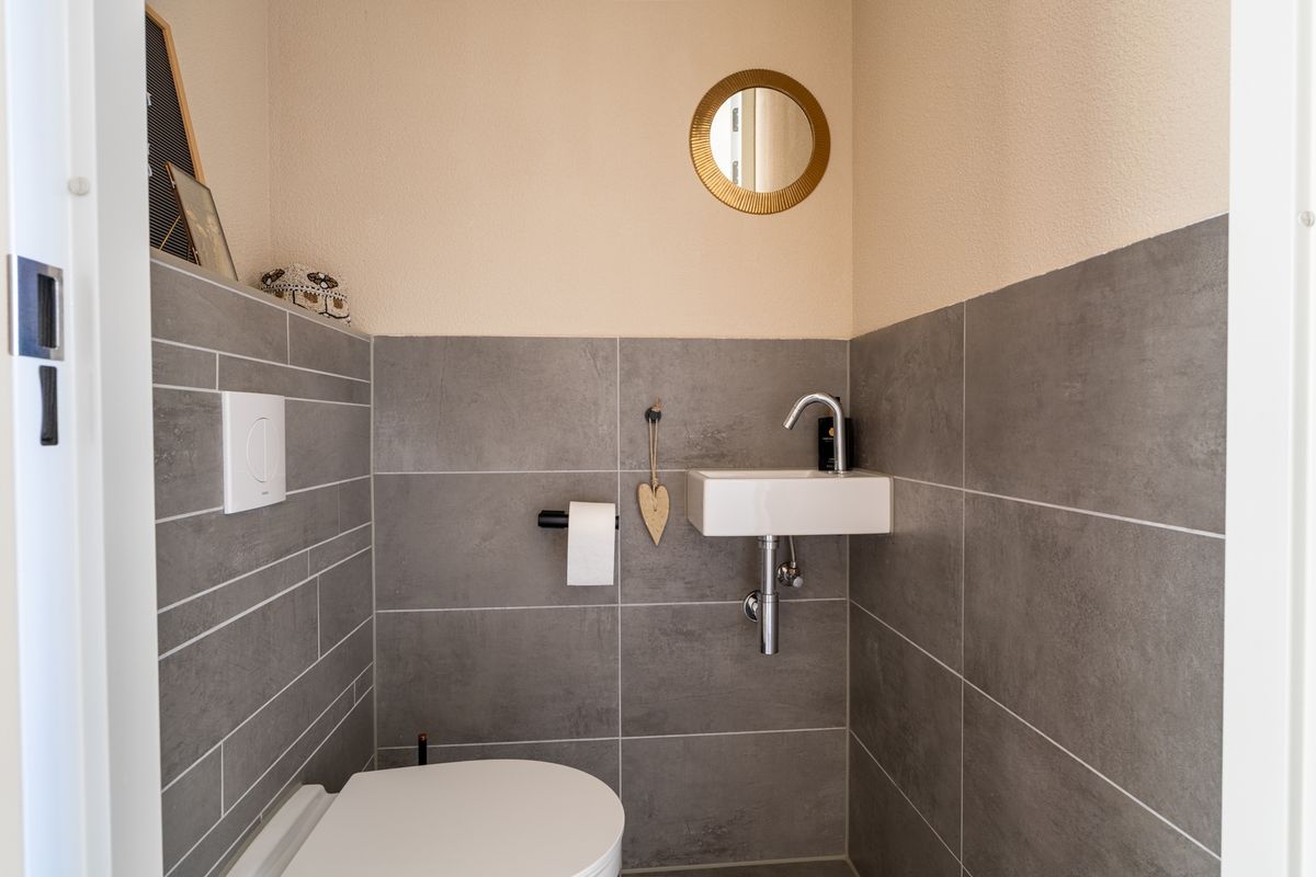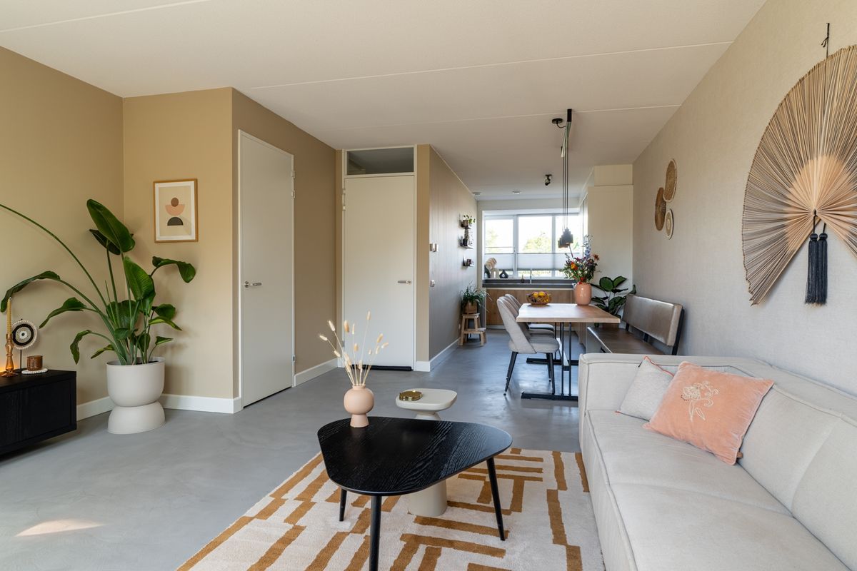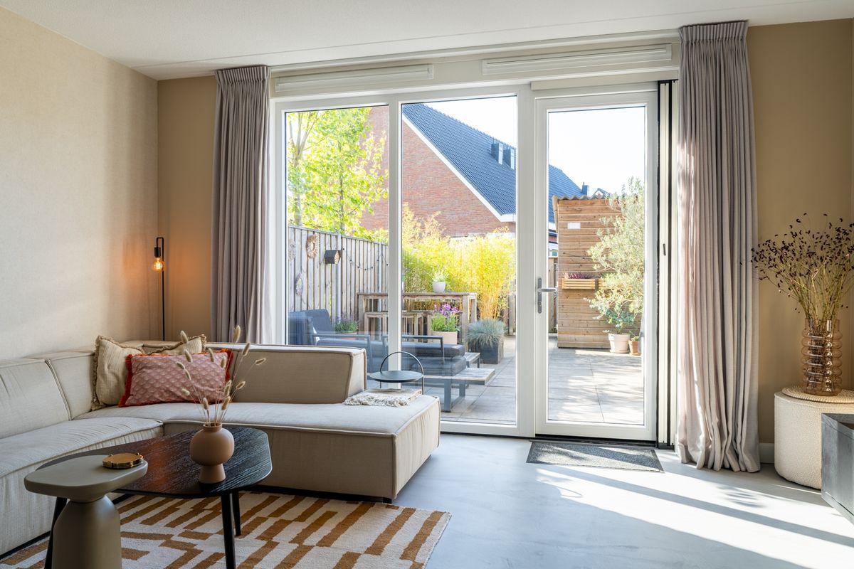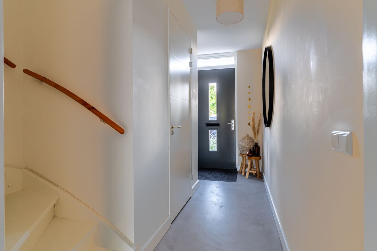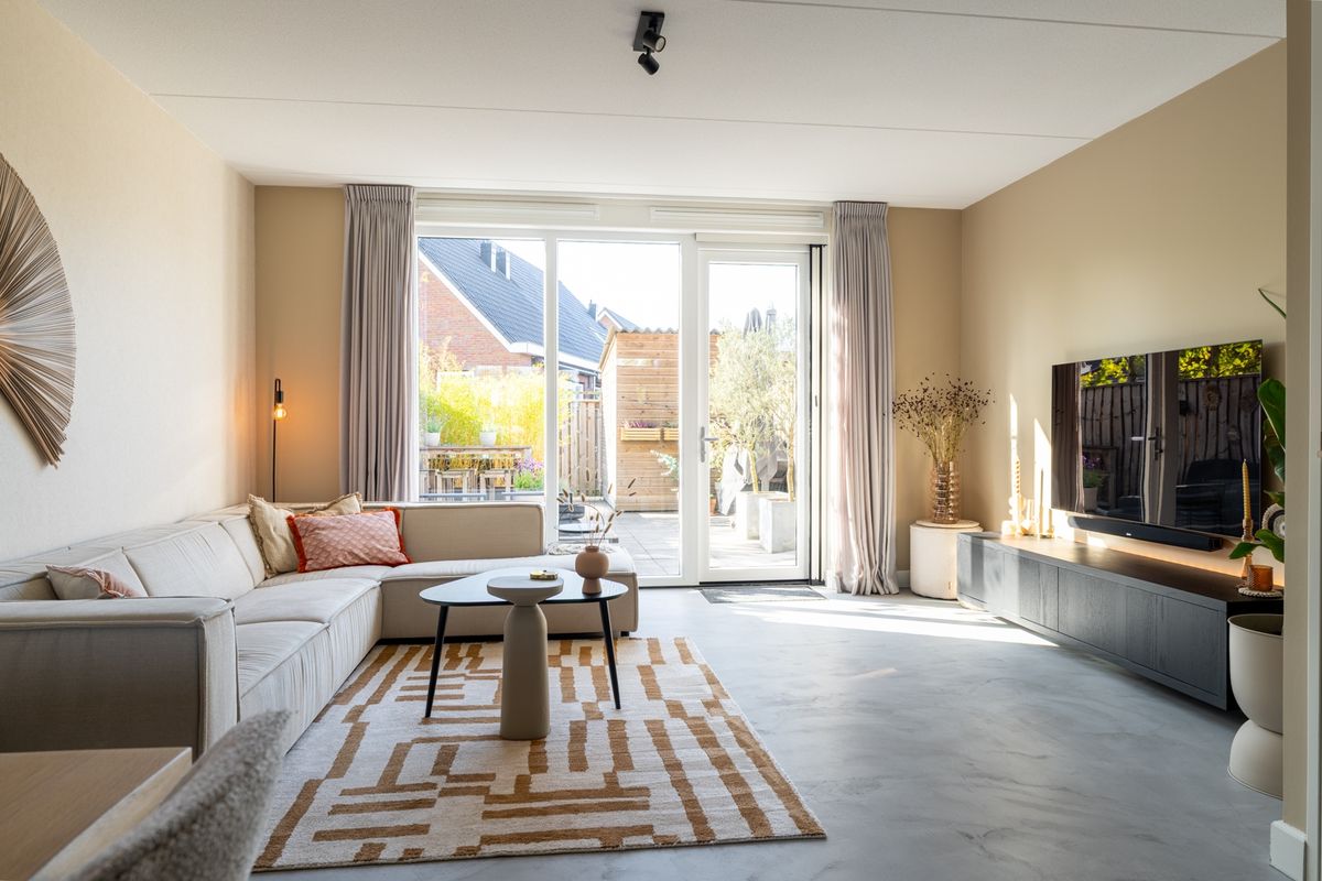 Binnenkomen doe je stijlvol op een strakke gietvloer. De uitgebouwde, lichte woonkamer met een royale glazen achterpui zorgt voor een open, ruimtelijk gevoel. Vanuit hier loop je zo de tuin in. Extra handig: een bergkast onder de trap. En ja, de hele begane grond is voorzien van vloerverwarming. Lekker comfortabel!