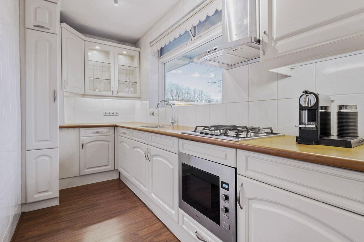 De keuken is separaat gelegen en riant uitgerust met inbouwapparatuur. Gaskookplaat met afzuigkap, vaatwasser, koel- vriescombinatie, combi oven/magnetron, spoelbak met mengkraan en heel veel praktische opbergruimte en werkblad.