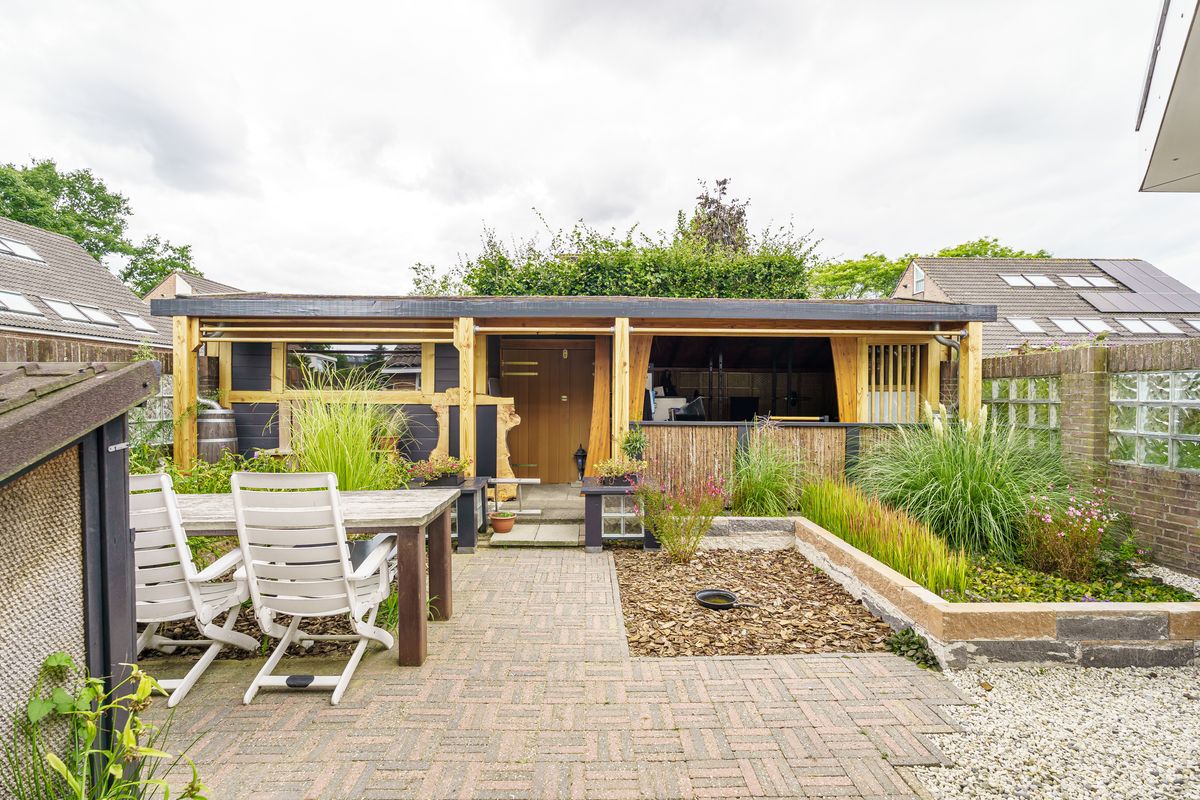 Deze goed onderhouden tweekapper biedt alles wat je nodig hebt voor aangenaam wonen. De riante leefruimte beneden is heerlijk licht en staat in open verbinding met de keuken, die is uitgerust met een oven, magnetron, koel-vriescombinatie, vaatwasser en een kookplaat. Vanuit de keuken heb je direct toegang tot de zonnige tuin op het zuidwesten; een heerlijke plek met veel privacy, groenblijvende beplanting en vrolijke bloeiers, een zonneterras en achterin de tuin is een gezellige, kwalitatief goede veranda (nu in gebruik als fitnessruimte) en een praktische berging. Parkeren doe je op je eigen oprit.