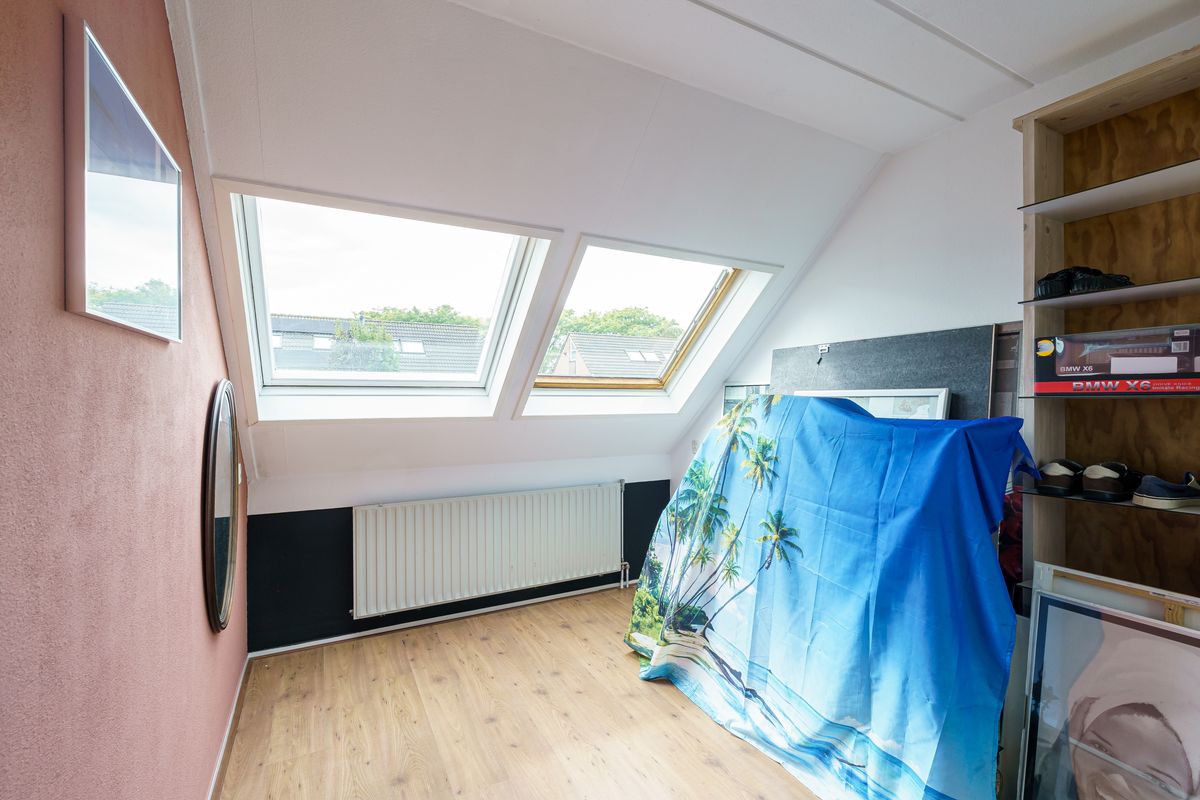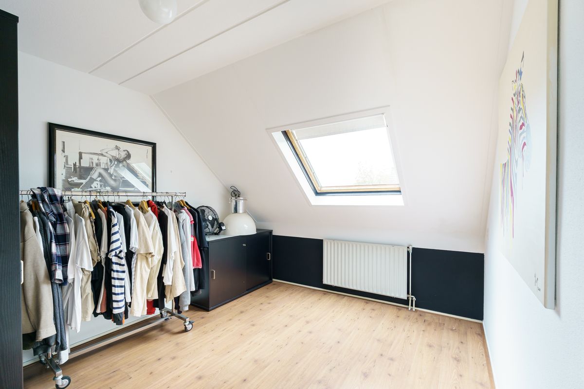 De tweede verdieping biedt nog meer ruimte. Hier bevindt zich een overloop met aansluitingen voor de wasmachine, een extra wastafel en de opstelling van de cv-ketel. Ook is hier de vierde slaapkamer te vinden: een volwaardige, ruime kamer met dakramen.
