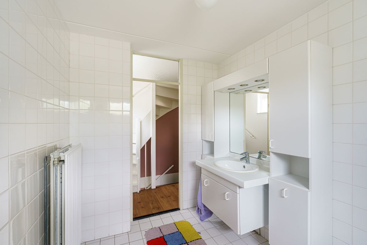 Op de eerste verdieping kom je via de overloop bij drie slaapkamers, alle van goed formaat. De kamers zijn flexibel in te richten en kunnen functioneren als kinderkamer, logeerkamer of werkruimte. De ruime badkamer is eenvoudig afgewerkt maar netjes onderhouden en beschikt over een douche, toilet en een wastafel. De ruimte biedt bovendien voldoende mogelijkheden voor wie de badkamer naar eigen smaak wil moderniseren.