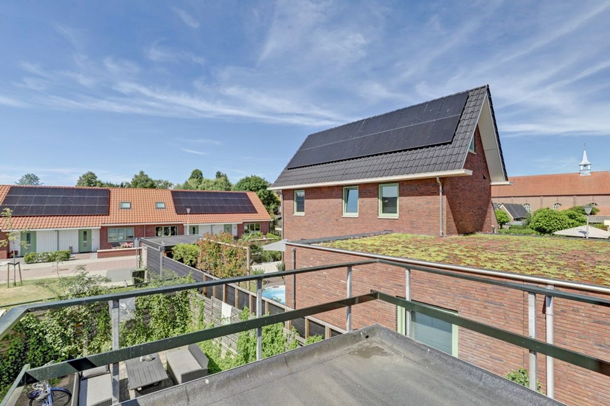 Op de verdieping een overloop, 3 slaapkamers, een douche en een balkon op het zuidwesten.