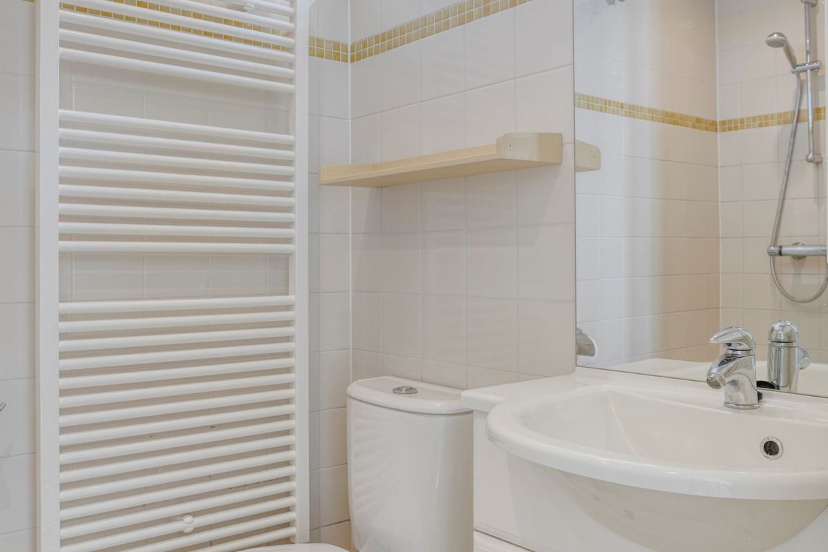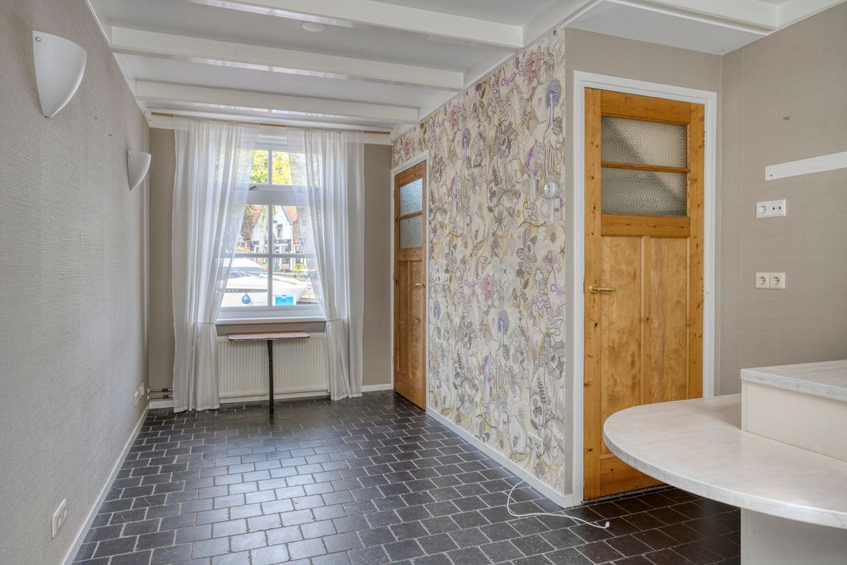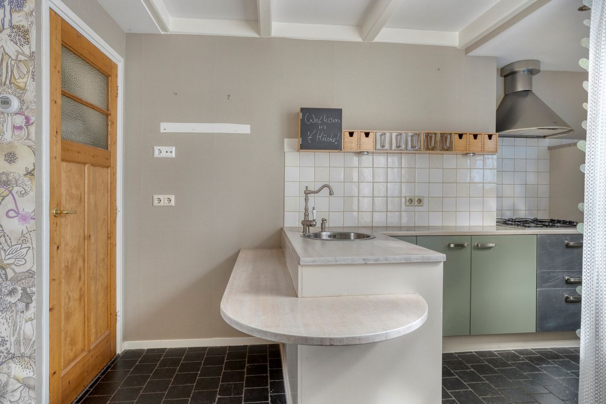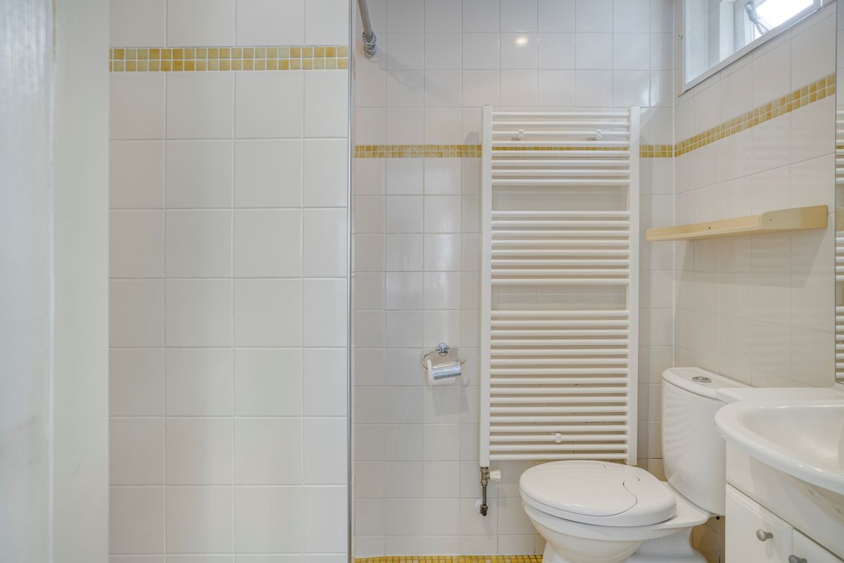 Via de entree kom je direct in de woonkamer, waar het licht volop binnenvalt. De ruimte is slim opgezet en geeft toegang tot de open keuken, voorzien van inbouwapparatuur. Achter de keuken vind je de badkamer, compleet met toilet, wastafel en douche.