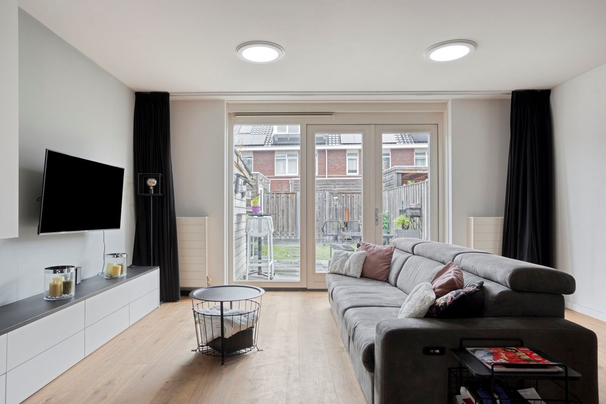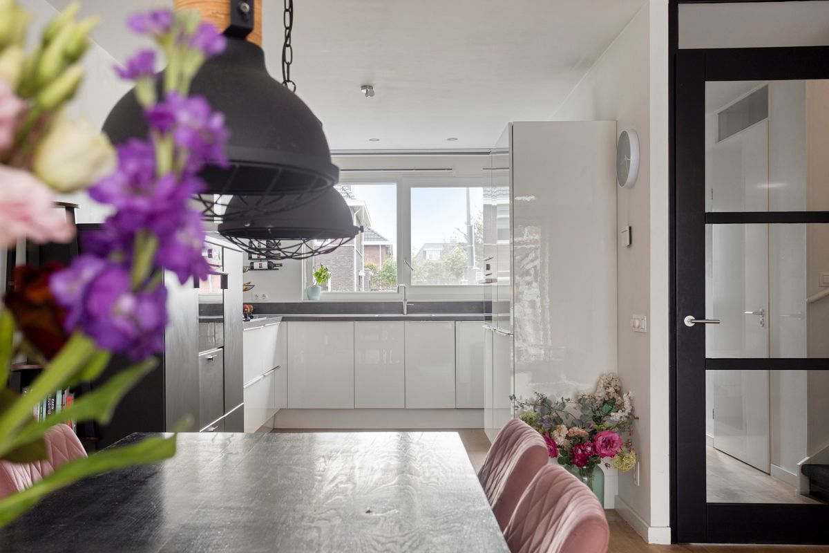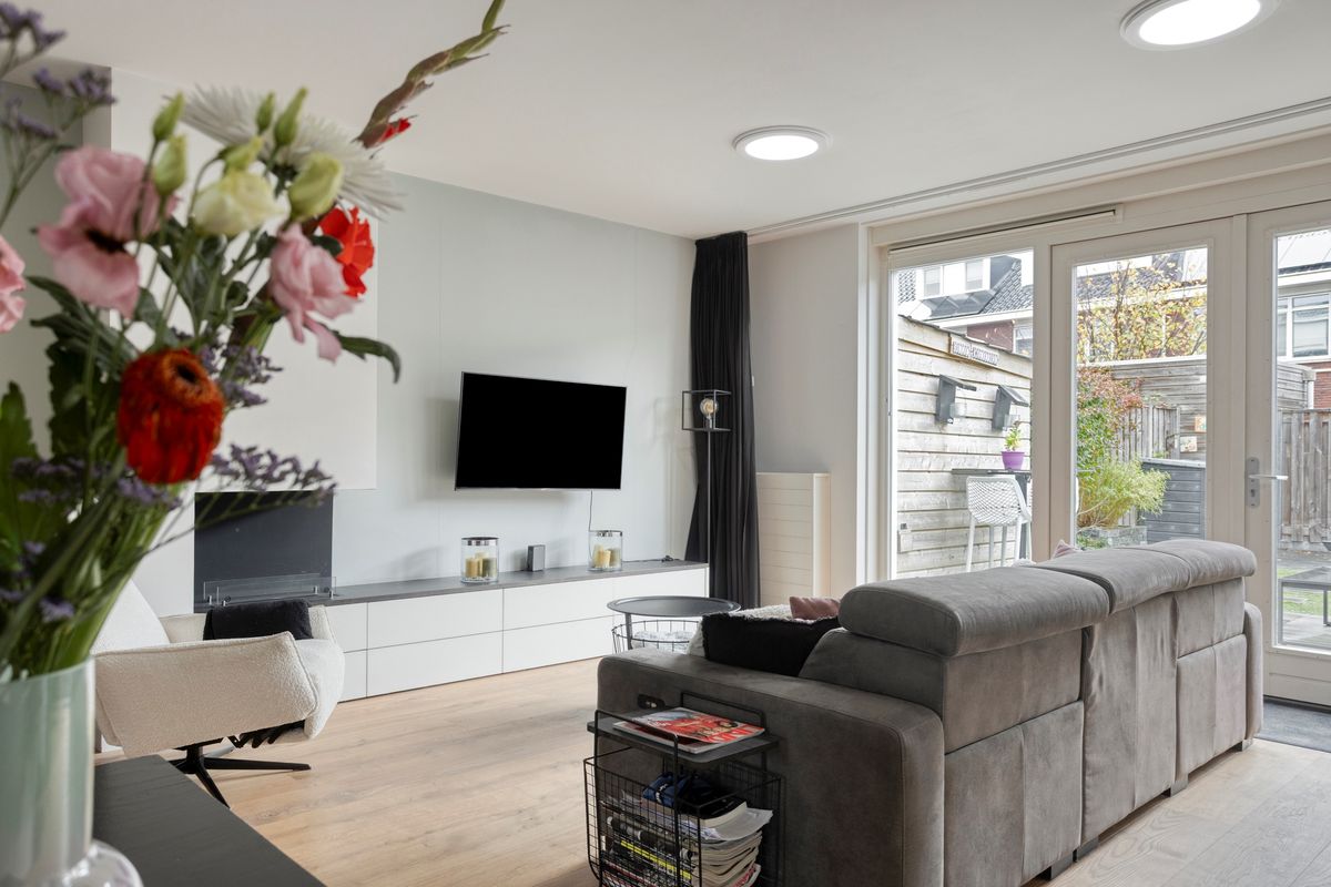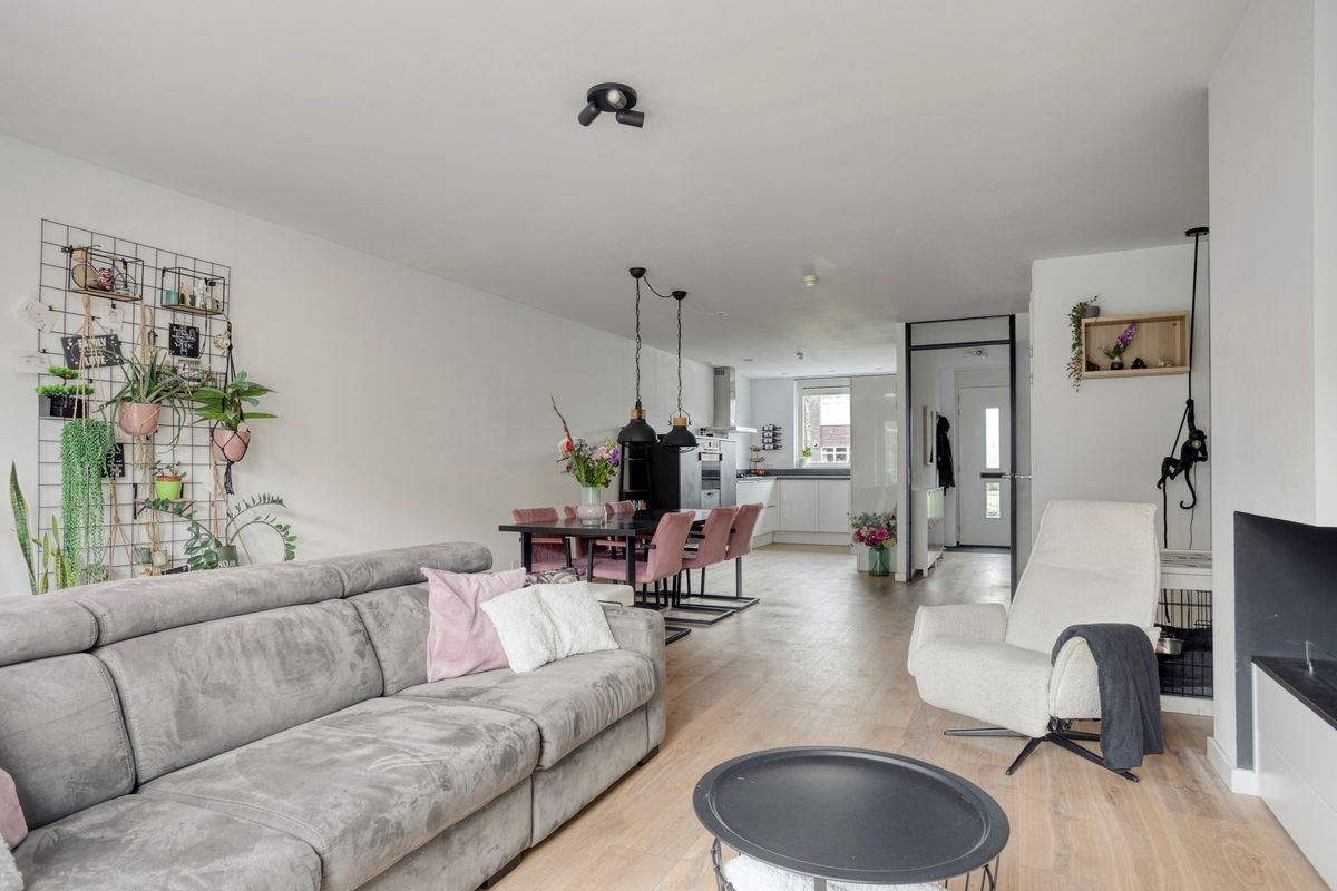 Bij binnenkomst voel je meteen de ruimtelijke sfeer van deze woning. De hal is licht en je vindt er een net en ruim toilet, maar ook de moderne meterkast. De uitbouw aan de achterzijde is voorzien van light tubes, waardoor er extra daglicht naar binnen valt en de ruimte nog meer open en uitnodigend aanvoelt. De woonkamer straalt comfort en stijl uit, met een houten vloer die in 2024 opnieuw in de lak is gezet, strak afgewerkte wanden en een sfeervolle haard. Middels openslaande deuren kom je in de zonnige achtertuin.