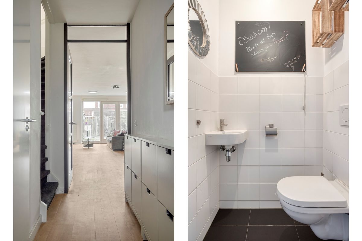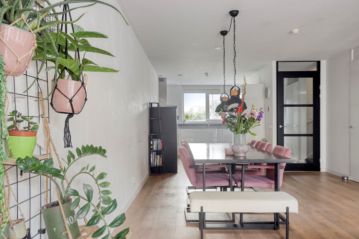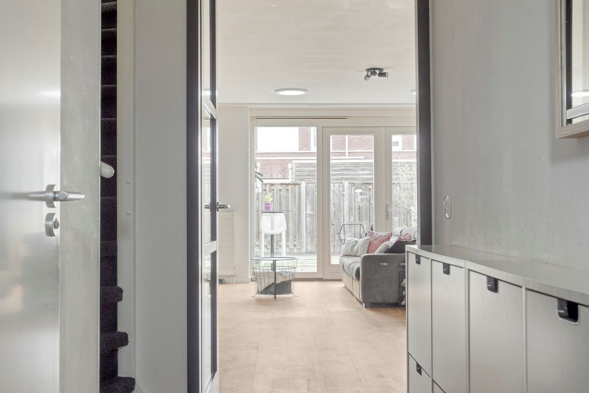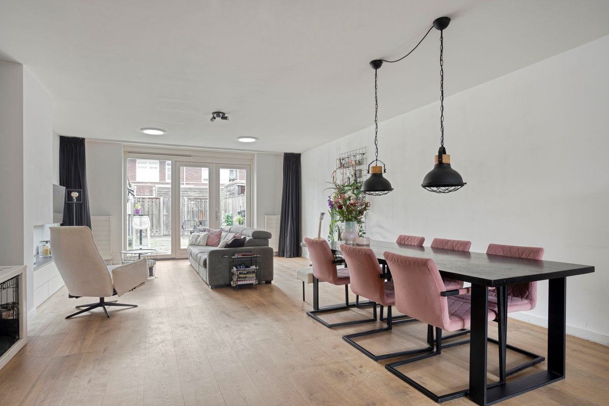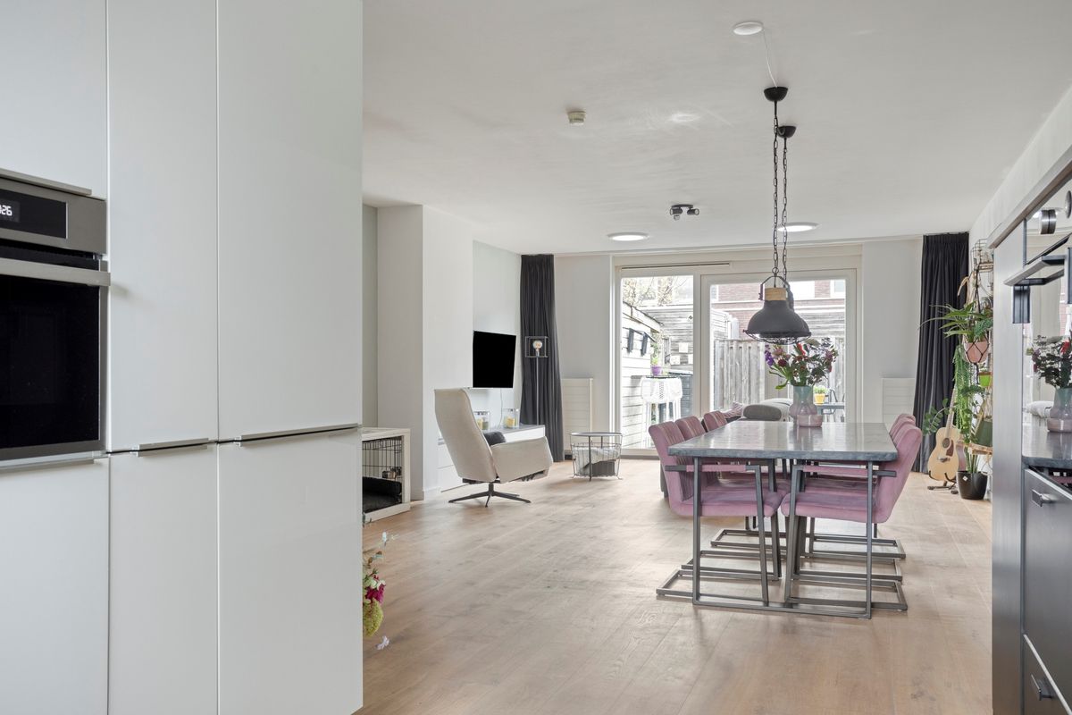 Bij binnenkomst voel je meteen de ruimtelijke sfeer van deze woning. De hal is licht en je vindt er een net en ruim toilet, maar ook de moderne meterkast. De uitbouw aan de achterzijde is voorzien van light tubes, waardoor er extra daglicht naar binnen valt en de ruimte nog meer open en uitnodigend aanvoelt. De woonkamer straalt comfort en stijl uit, met een houten vloer die in 2024 opnieuw in de lak is gezet, strak afgewerkte wanden en een sfeervolle haard. Middels openslaande deuren kom je in de zonnige achtertuin.