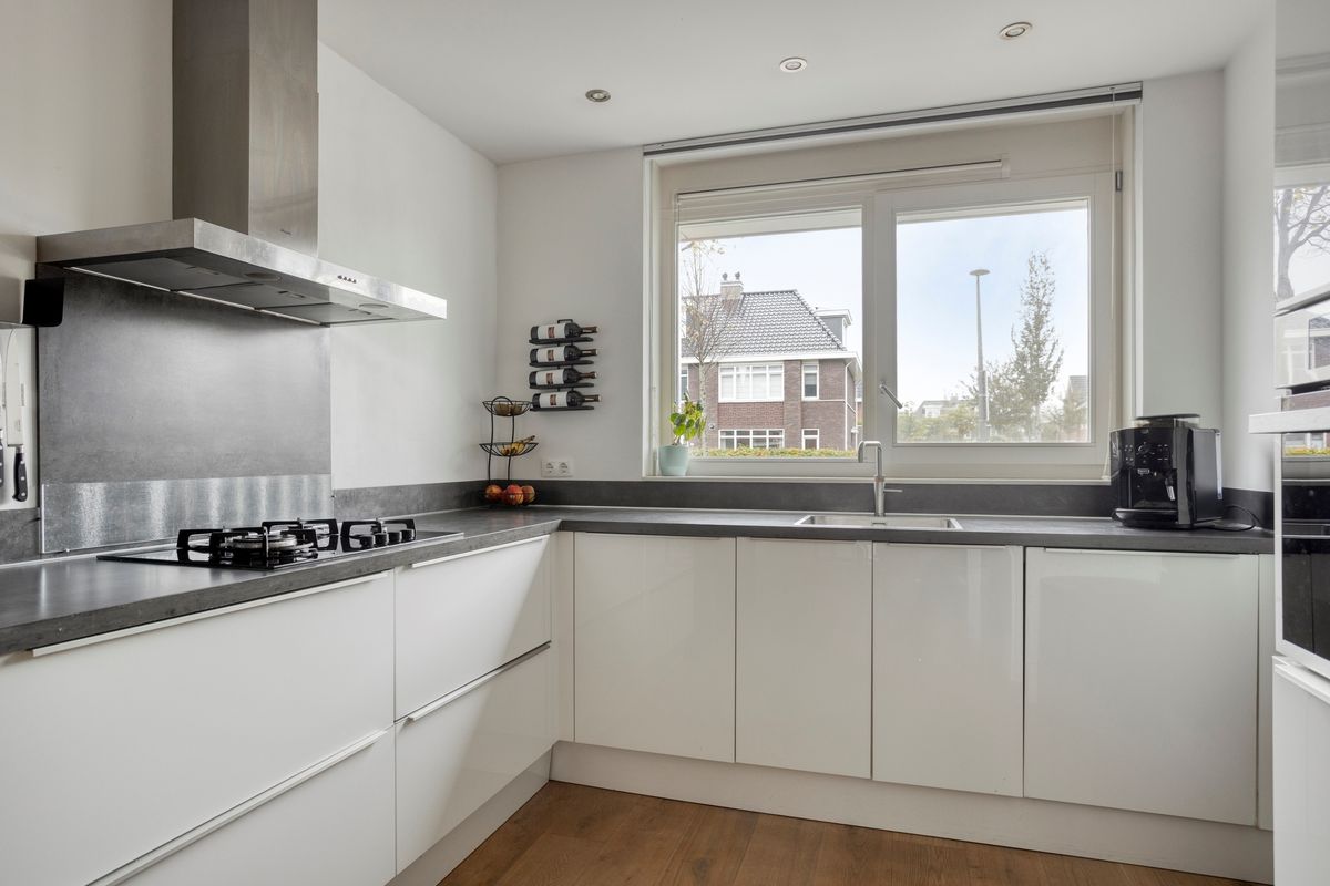 Aan de voorzijde bevindt zich de moderne open keuken. De keuken is volledig uitgerust met een koelvriescombinatie, extra koelkast en vriezer, luxe oven en een combimagnetron, Quooker, 4-pits gasfornuis en RVS-afzuigkap. Dankzij de slimme indeling en de handige trapkast is er bovendien volop opbergruimte.