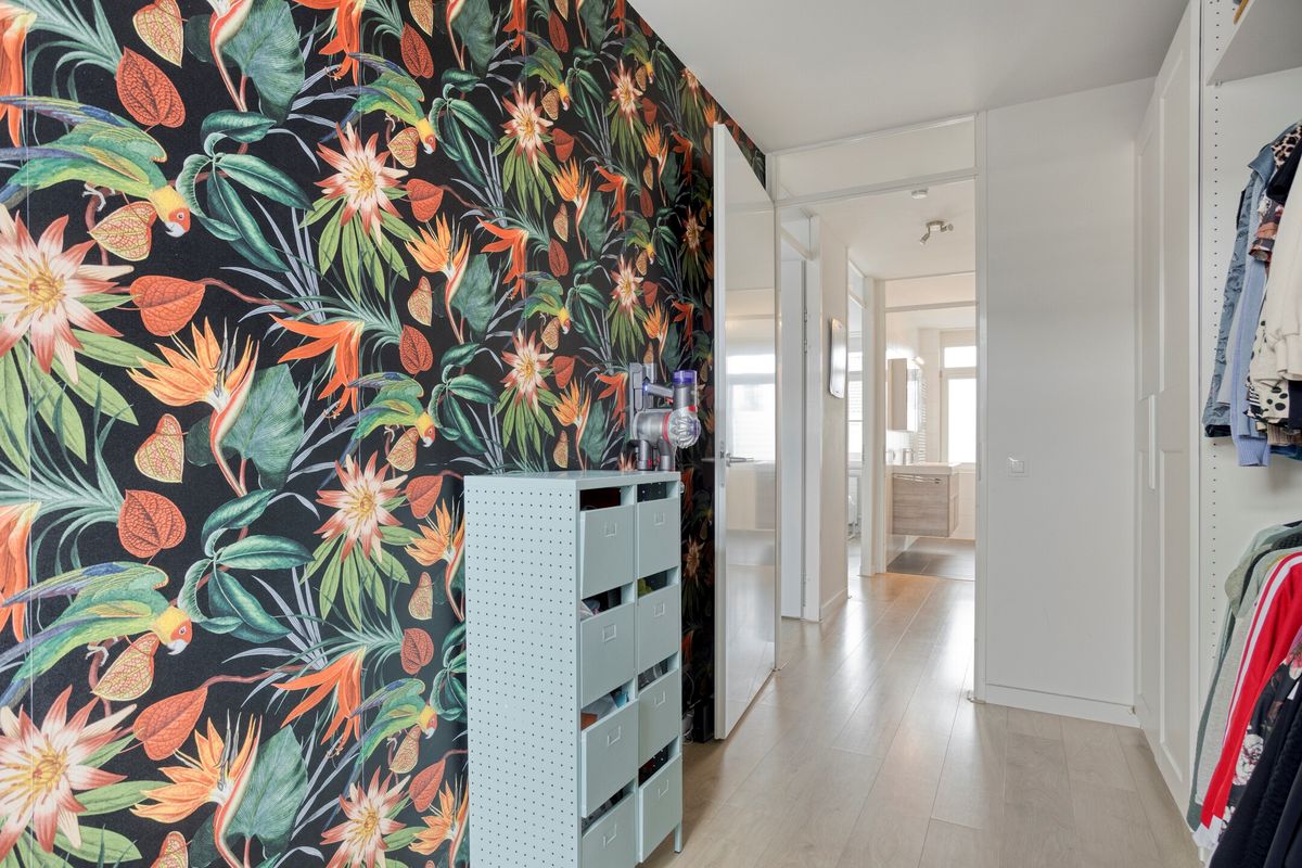 De moderne badkamer is royaal opgezet en biedt volop comfort. Je vindt hier een inloopdouche, tweede toilet en een dubbel wastafelmeubel met praktische opbergruimte.