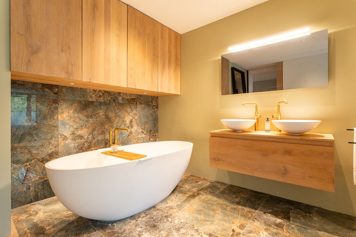 • 2 badkamers (waarvan één en suite met ligbad, douche, dubbele wastafel en toilet)