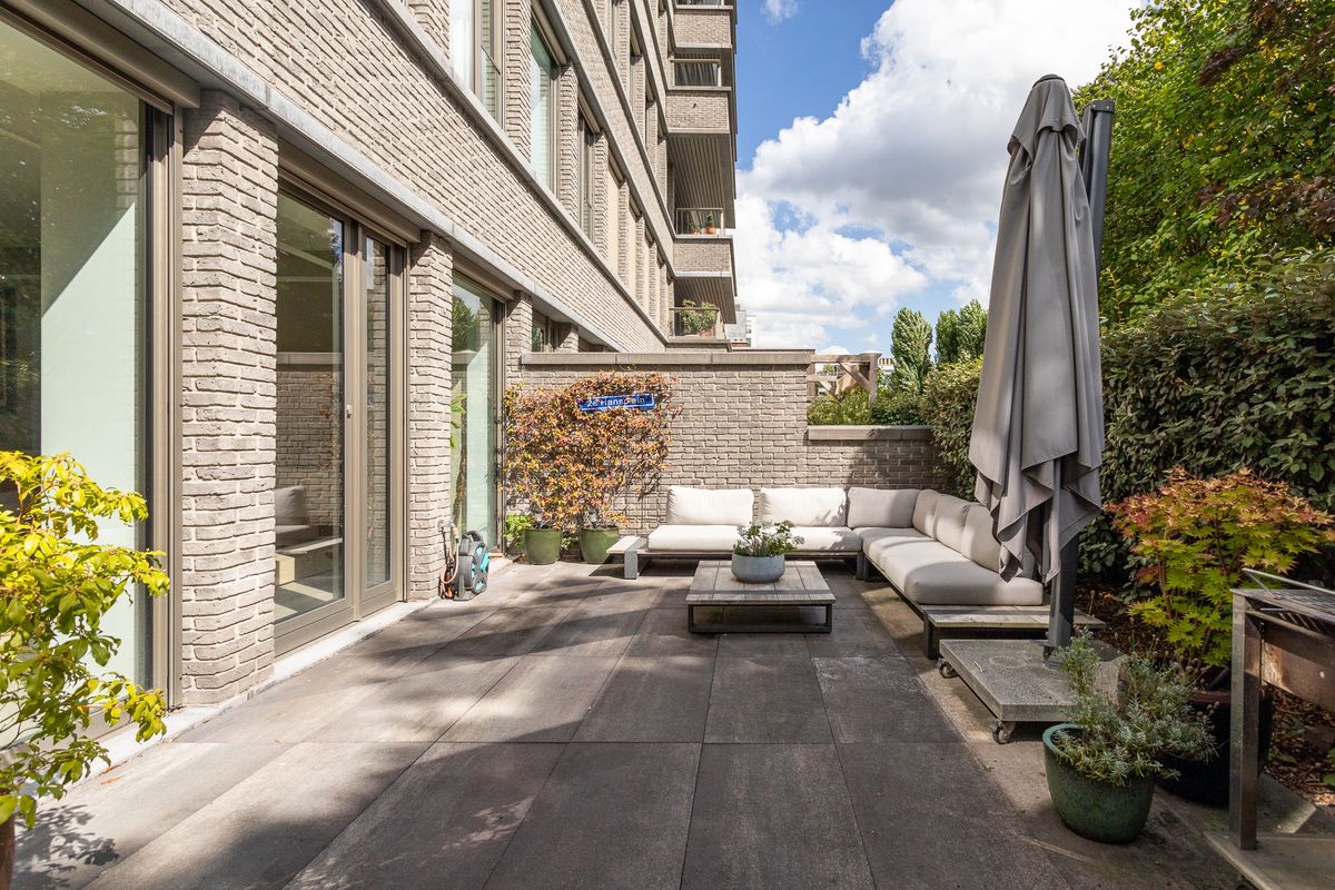 Luxe en instapklaar gelijkvloers appartement van circa 130 m² woonoppervlak (BVO 142 m²) met een hoogwaardige afwerking. Dit appartement beschikt over een riante woonkamer met open keuken, 2 slaapkamers, 2 badkamers en twee privé-tuinen (voor- en achterzijde), een berging en optioneel een privé parkeerplaats in de ondergrondse garage. De hoge plafonds (ca. 2,87 m) en grote raampartijen zorgen voor veel licht en een ruimtelijk gevoel.