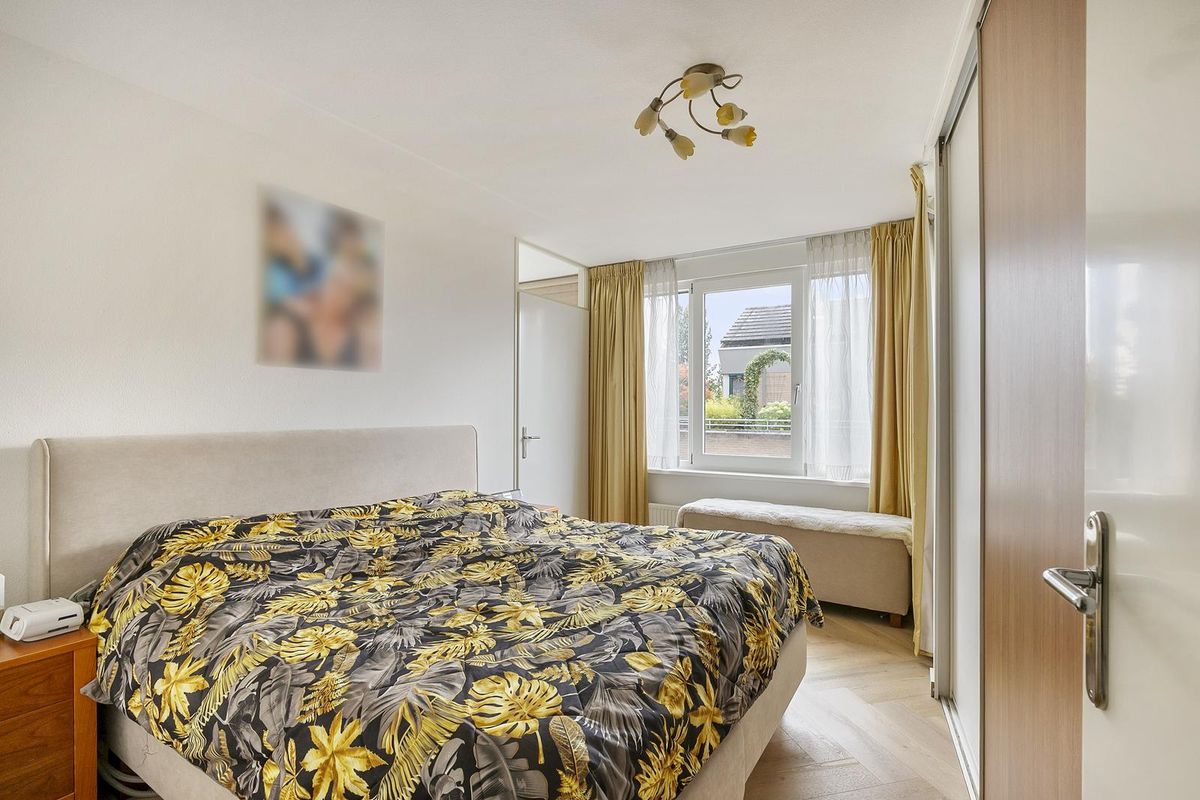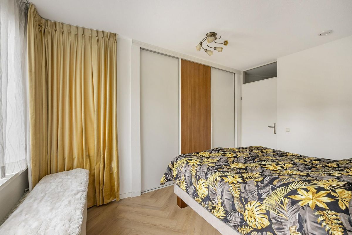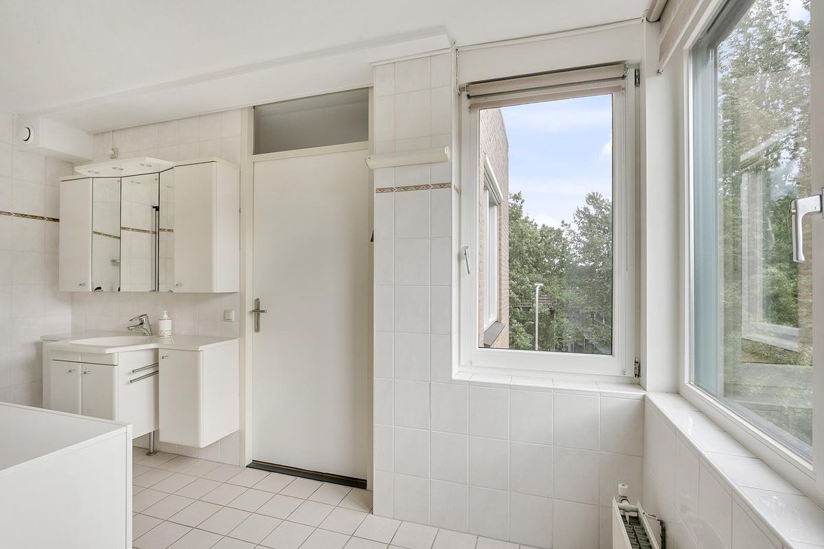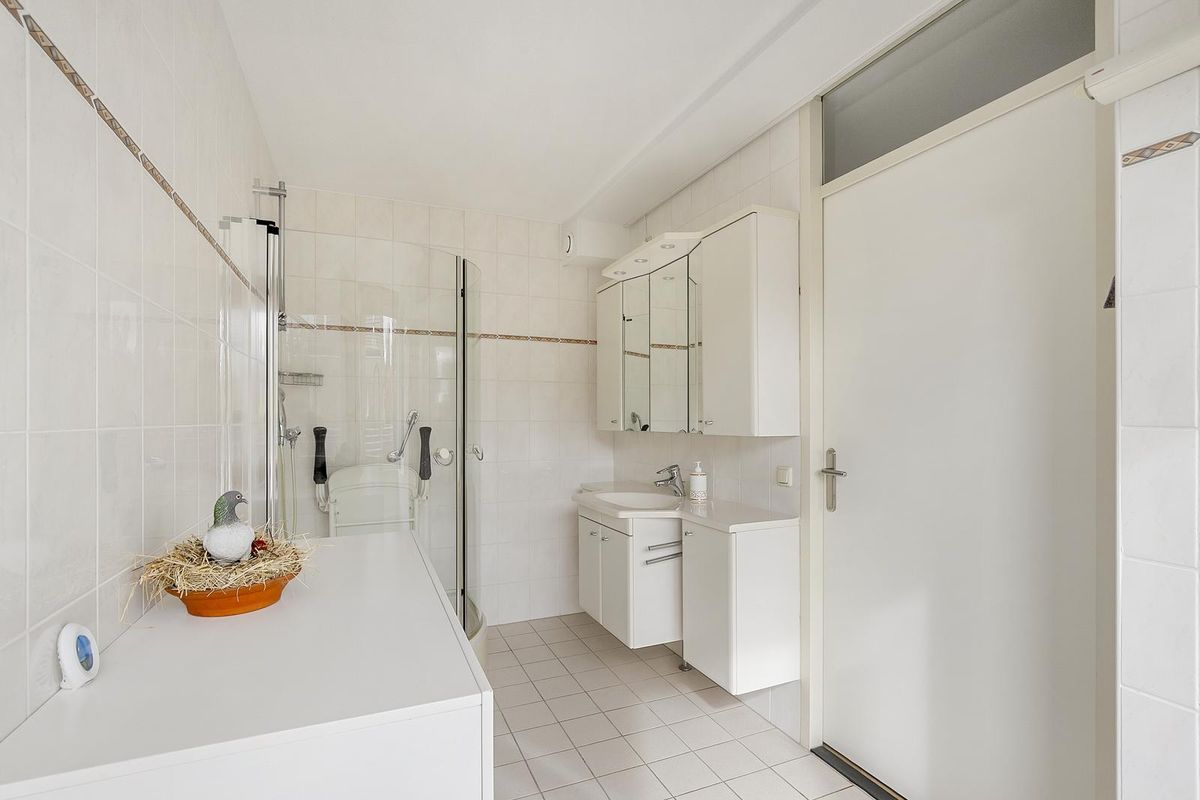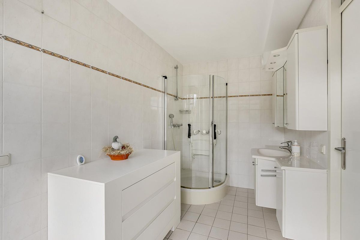 De ruime slaapkamer is voorzien van een grote raampartij en een royale inbouwkast (schuifdeuren). Aangrenzend is de lichte badkamer eveneens vanuit de woonkamer - of tweede slaapkamer als deze gecreëerd wordt – bereikbaar. De badkamer beschikt over een comfortabele douchecabine en een royaal wastafelmeubel met spiegelkast (v.v. verlichting) erboven.