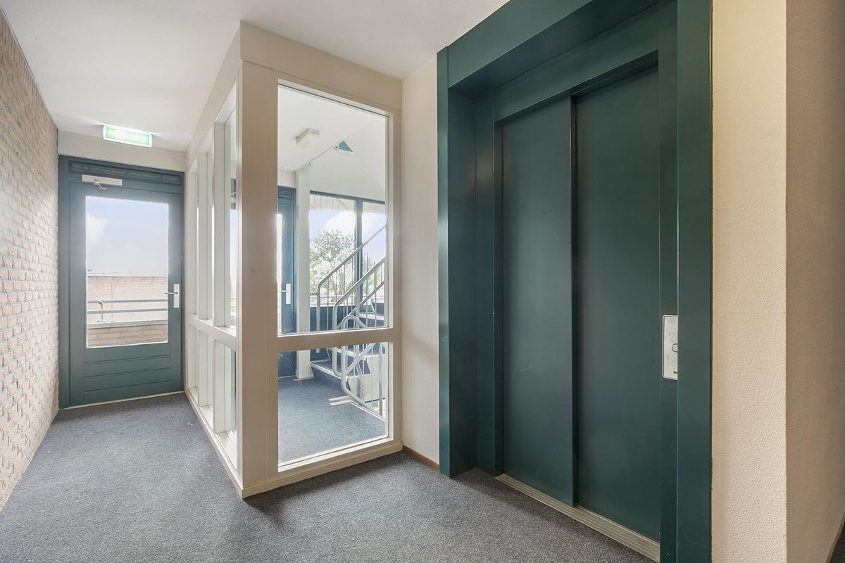 Begane grond: bij binnenkomst via de overdekte entree (met bellen en brievenbussen), leiden de lift en trap naar het appartement op de derde verdieping.