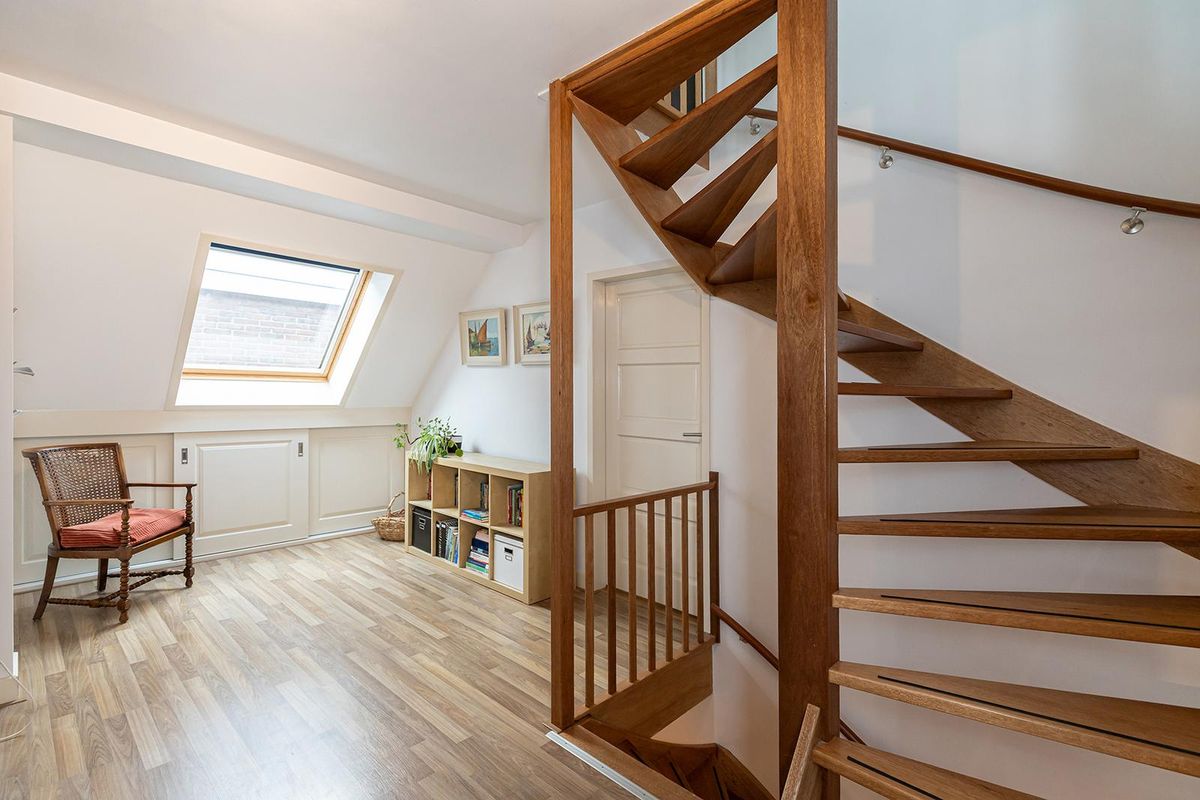 Een tweede open trap leidt naar de ruime zolderverdieping met dakkapel. De open ruimte is multifunctioneel en ideaal als werk- of hobbyruimte. Aan de achterzijde bevindt zich een vijfde slaapkamer met dakkapel en groot dakraam. De nokhoogte van circa 2,75 meter zorgt voor een aangenaam ruimtelijk gevoel. Hier is tevens toegang tot de cv-ruimte.