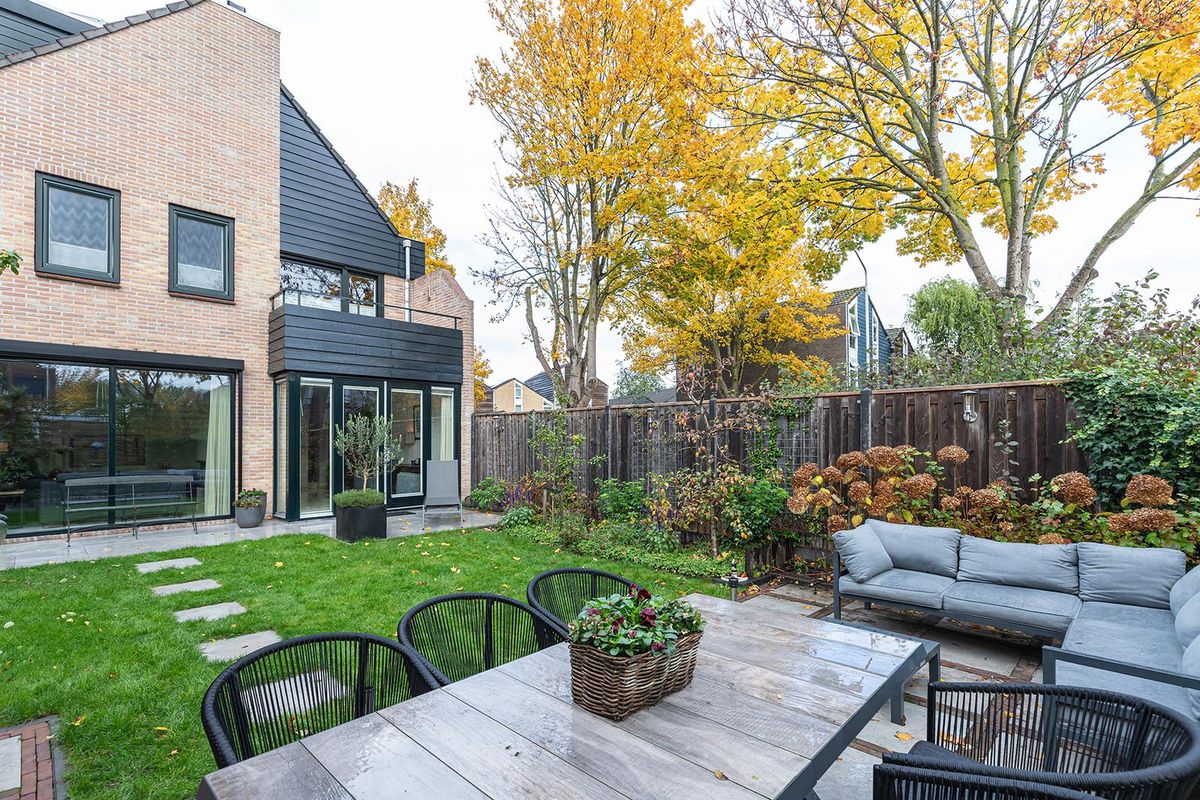 De fraai aangelegde achtertuin ligt op het oosten en biedt veel privacy. Het geheel is verzorgd ingericht met een gazon, volwassen beplanting, leibomen en sfeervolle buitenverlichting. Er zijn meerdere terrassen – zowel bij de woning als achterin de tuin – zodat er altijd een plekje in de zon of schaduw te vinden is. Het houten tuinhuis en het gezellige buitenverblijf maken de tuin compleet en nodigen uit tot lange zomeravonden buiten.