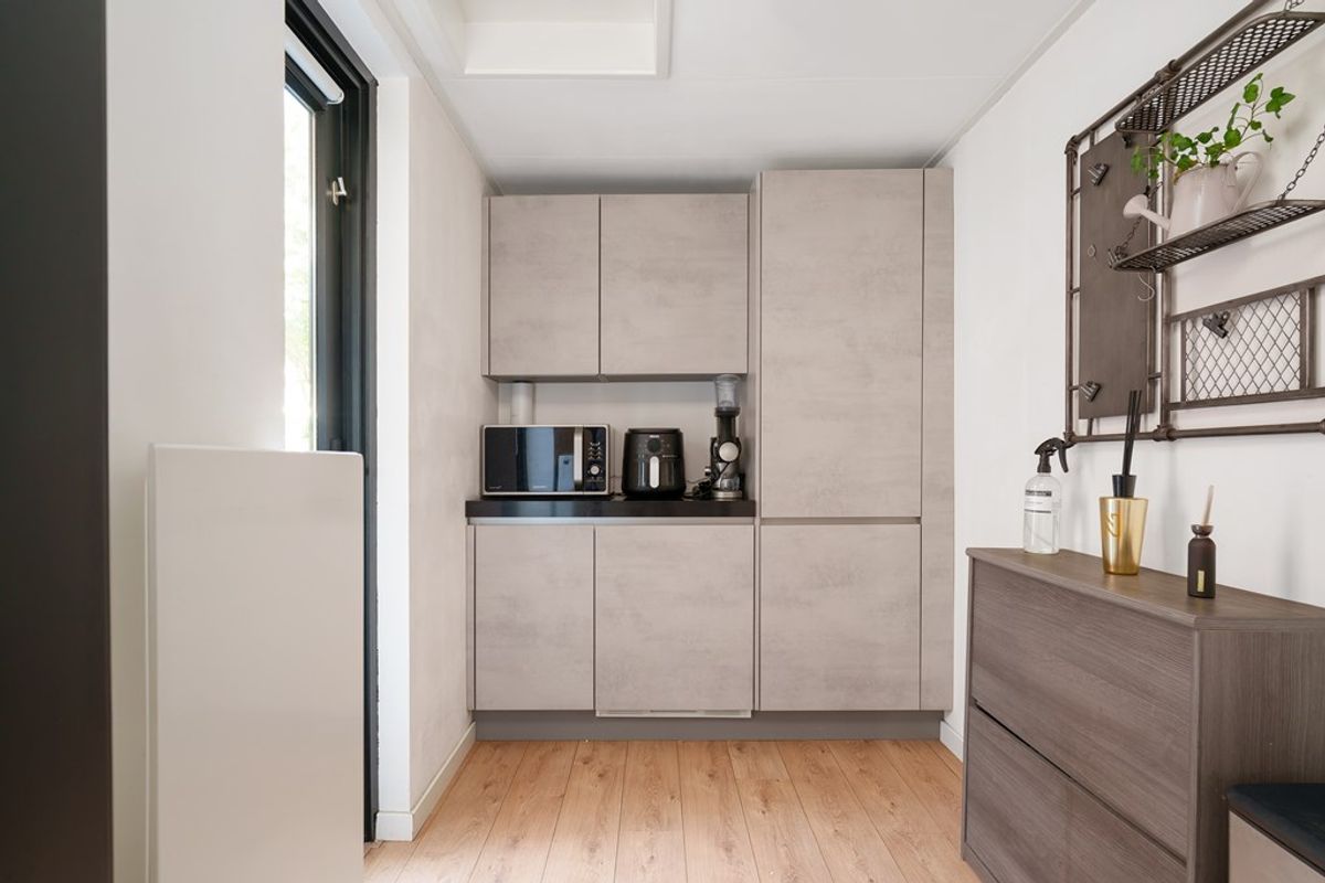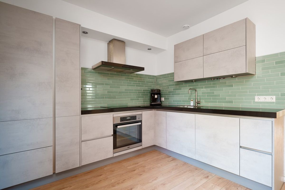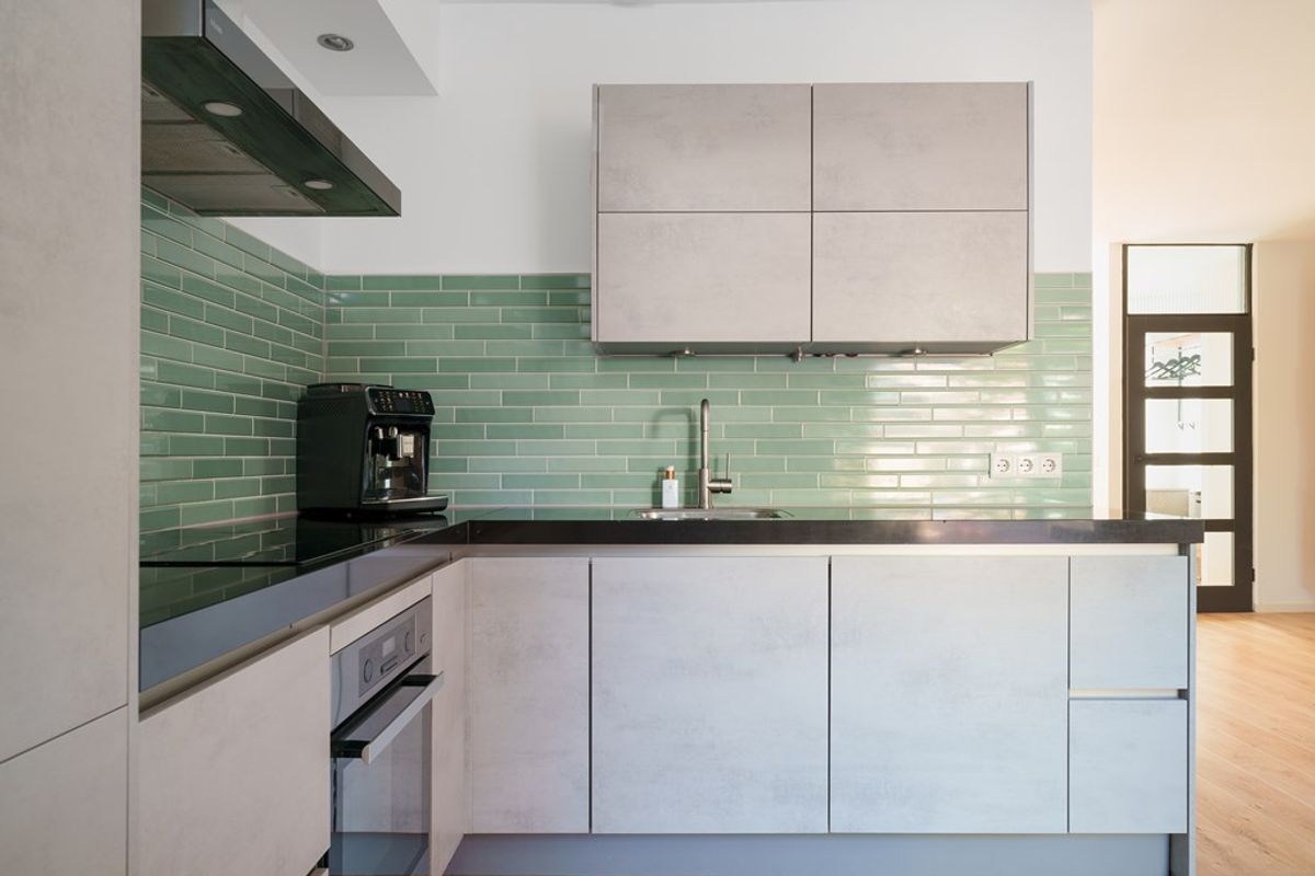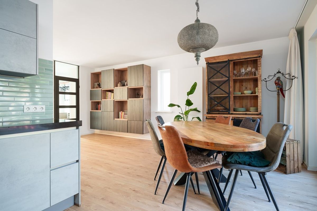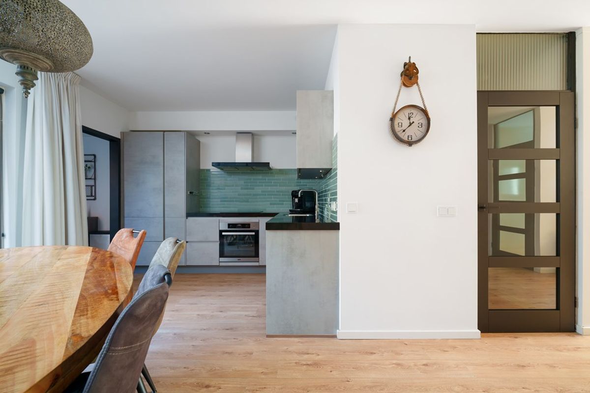 De moderne keuken (2020) is een ware eyecatcher, voorzien van veel werk- en kastruimte met greeploze lades en een hoge kastenwand.