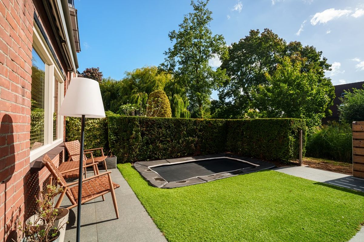 • Voortuin: een fijne plek om van de zon te genieten, terwijl kinderen spelen op het gazon of trampoline.