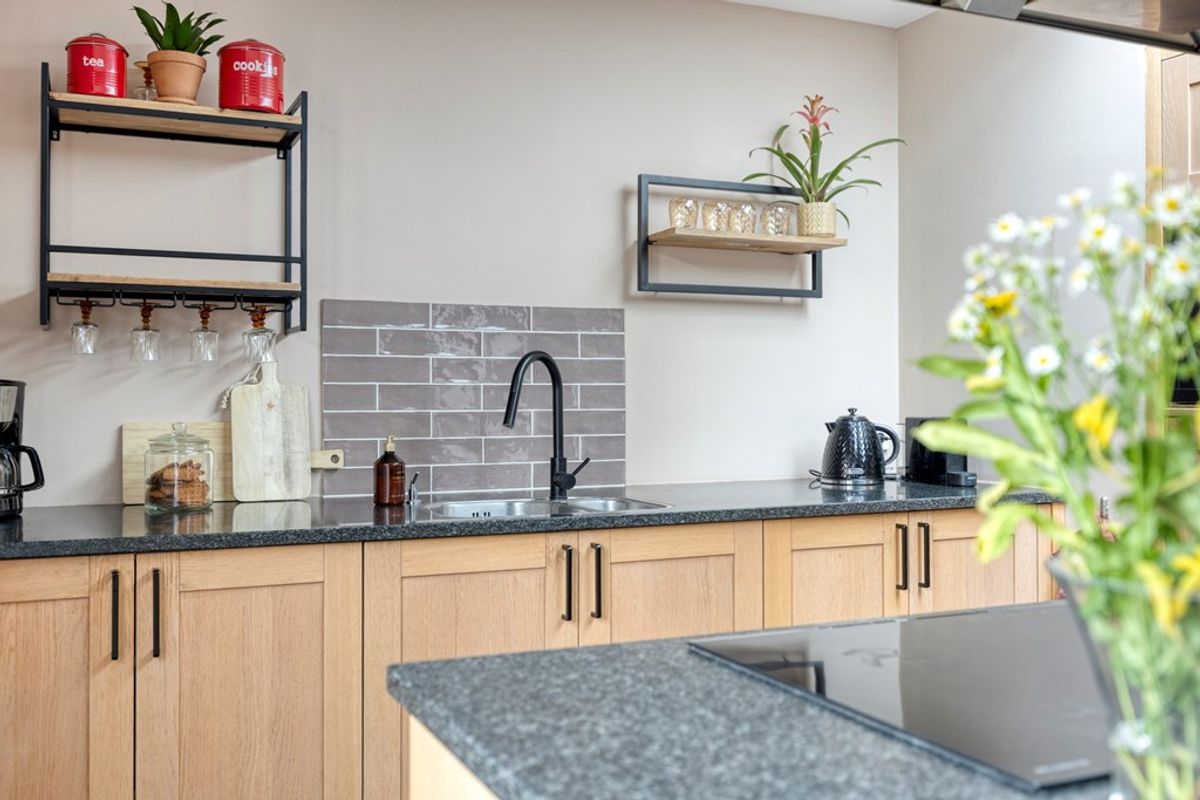 Aansluitend vind je de ruim opgezette leefkeuken. Deze keuken is zo ingericht dat je direct zin hebt te beginnen met kokkerellen voor gezellig gezelschap. een leuke – alles erop ruimte voor ontbijt, borrels, diners en spelletjesavonden met vrienden en familie. Trouwens: ook de toiletruimte beneden en de moderne badkamer boven zijn keurig en stijlvol afgewerkt. Geen oude tegeltjes meer – gewoon strak en eigentijds.