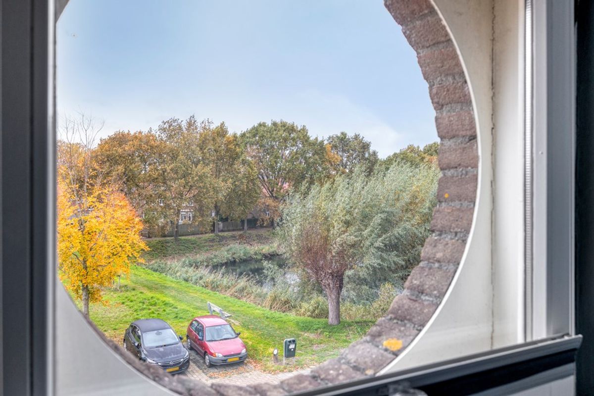 Deze woning ligt heerlijk tegenover een brede groenstrook, zonder directe overburen. Geen inkijk dus, wel volop privacy en een mooi uitzicht op de prachtige “vestinggracht de Veste”. Hier beginnen je dagen met het ruisen van de bomen en eindig je met het ondergaan van de zon in je voortuin.
