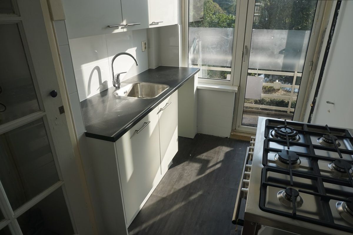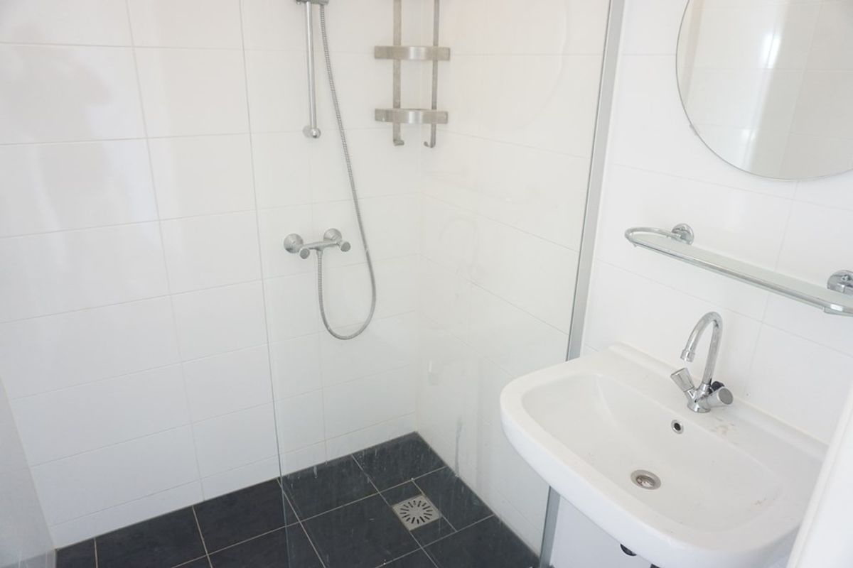De keuken is voorzien van een keukenblok met kastjes, wasbak, afzuigkap en los gasfornuis (hoort niet bij het gehuurde).