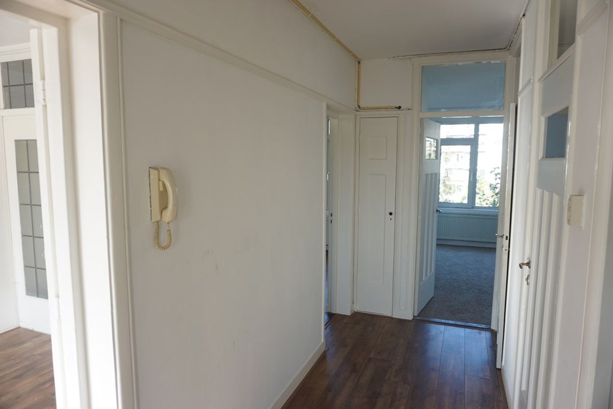 De gemeenschappelijke hal/entree en biedt toegang tot het trappenhuis.