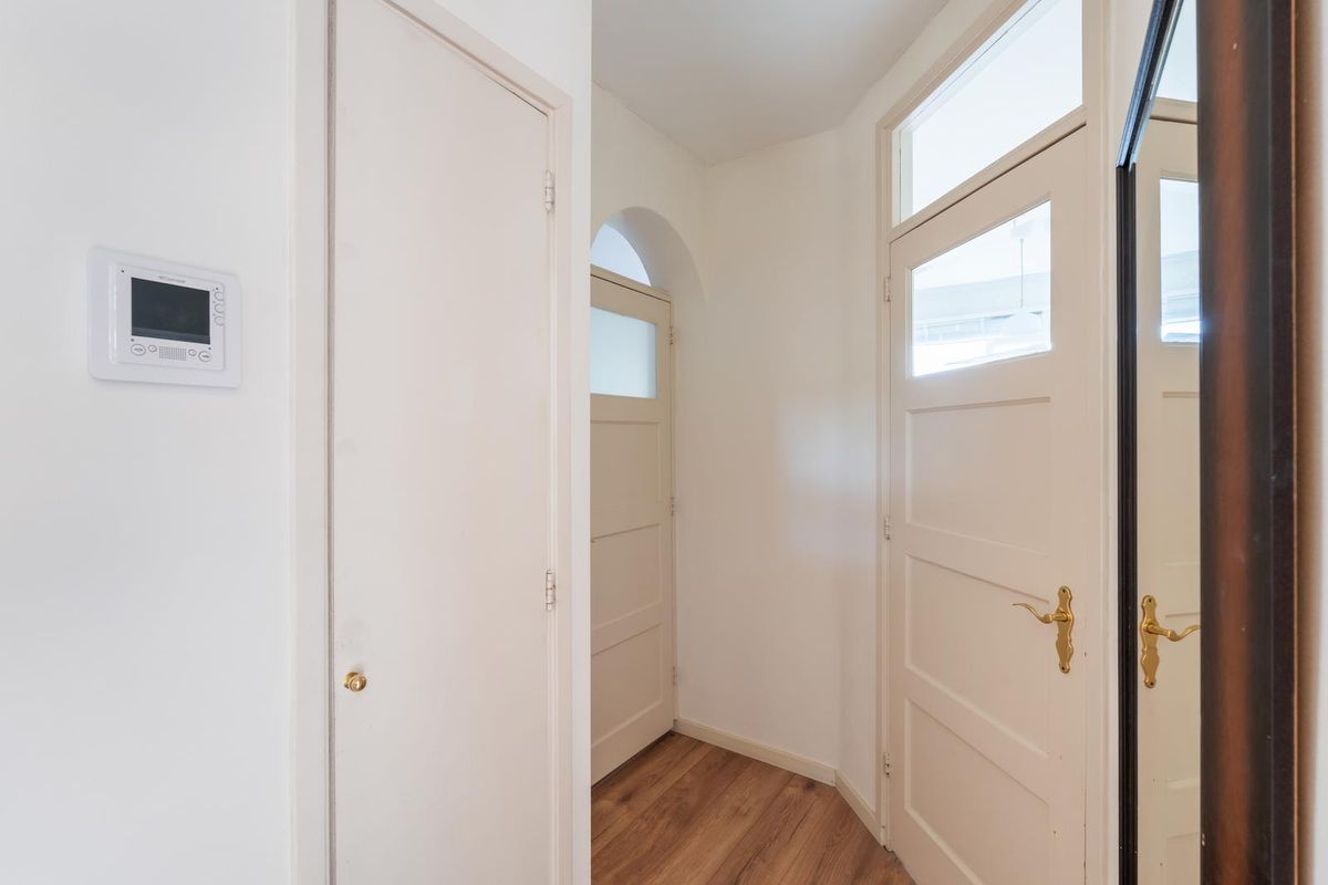 Afgesloten portiek met bellentableau en brievenbussen en trap naar de bergingen gelegen onder het complex en trapopgang naar de 2e verdieping.