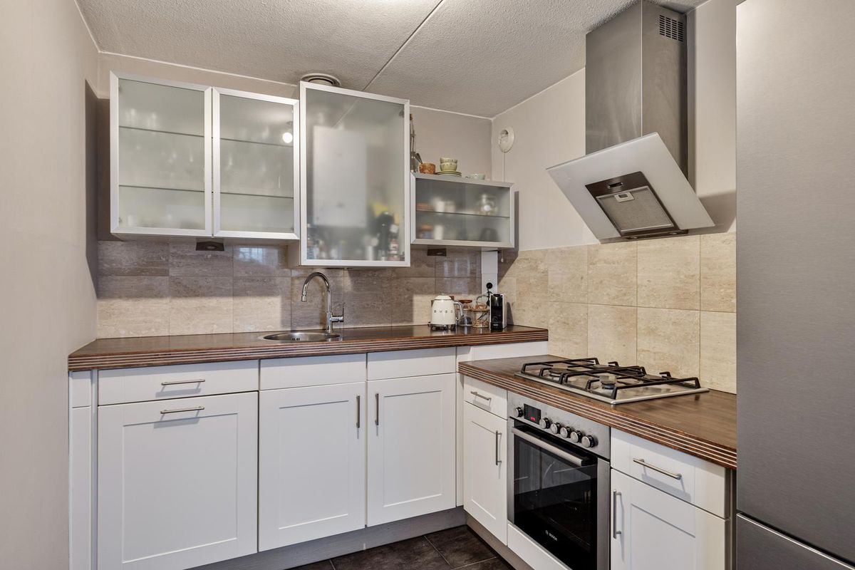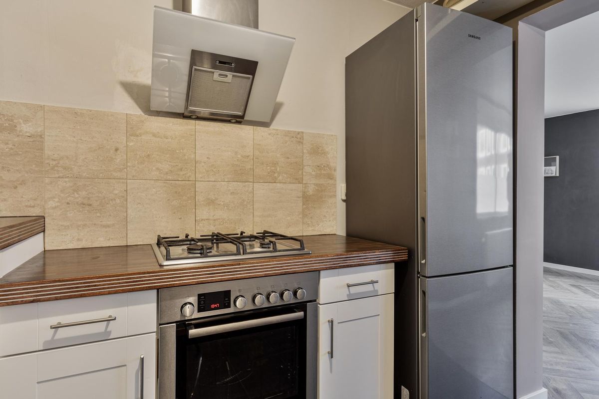 - Keuken: De open keuken is strak afgewerkt en voorzien van witte keukenkasten met een donker werkblad. Hier vind je alle benodigde inbouwapparatuur, zoals een gaskookplaat, vaatwasser, oven en afzuigkap.