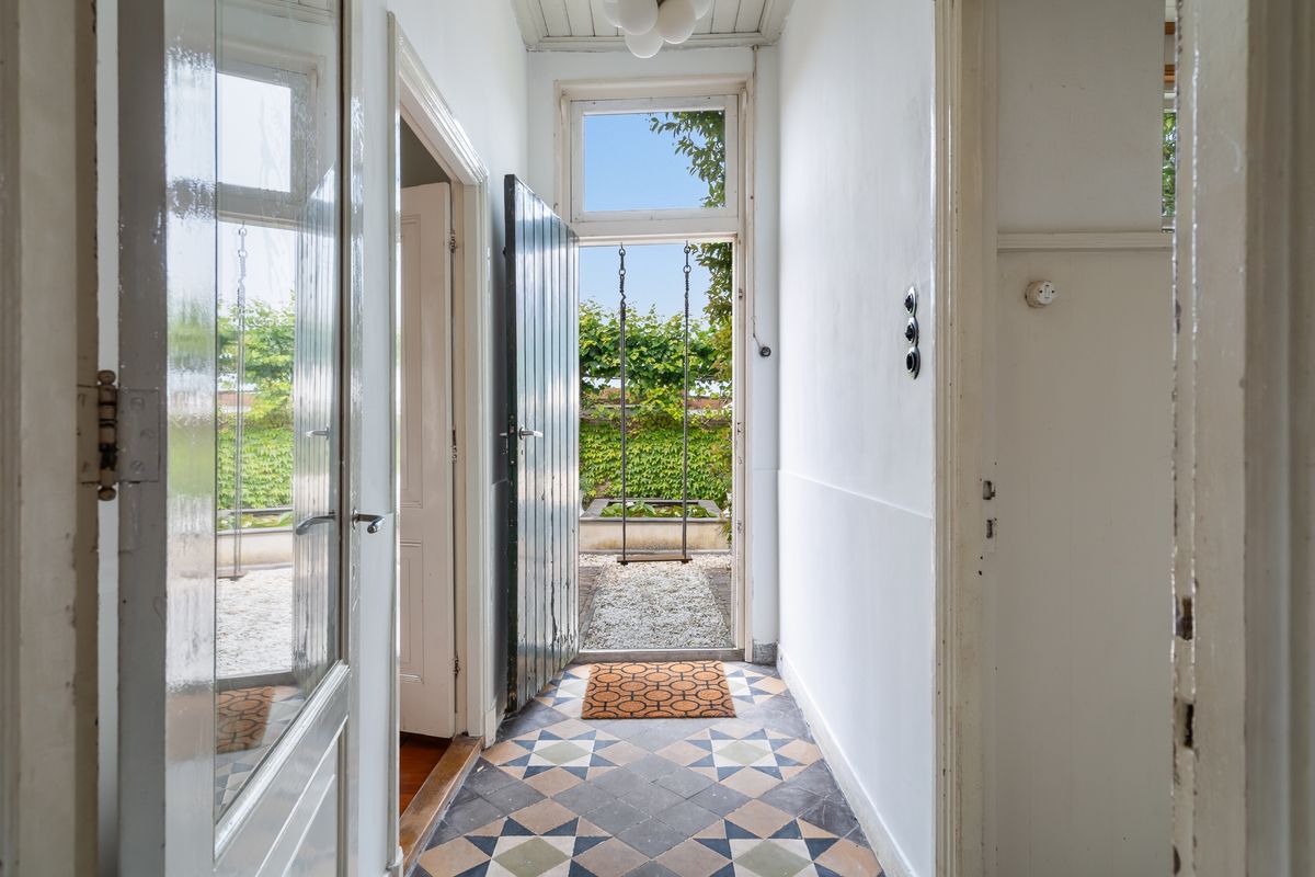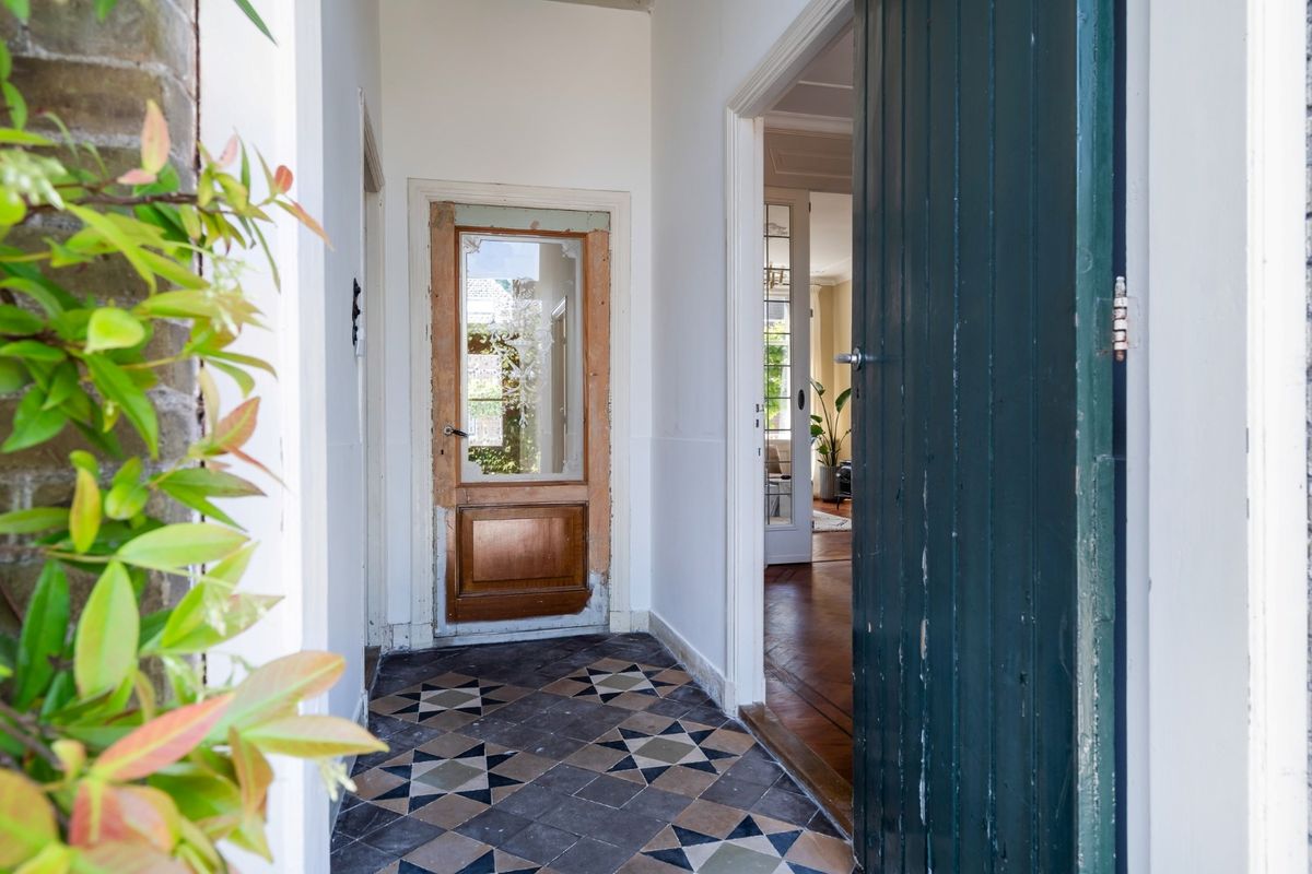 Bij binnenkomst via de diepe gang met marmeren vloer voel je direct de karakteristieke sfeer van deze bijzondere woning.