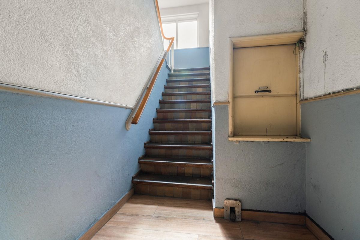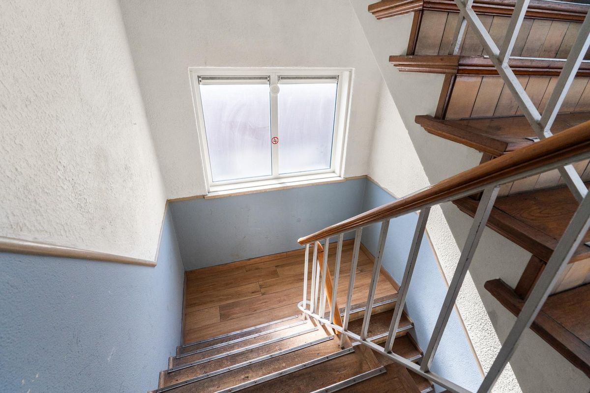 Begane grond, overdekte, centrale entree met brievenbustableau, trappenhuis en authentieke verhuislift.