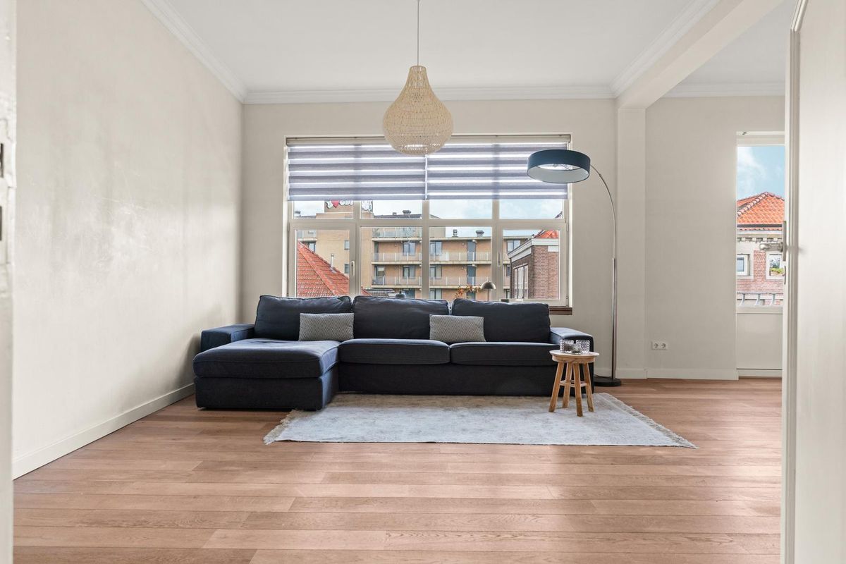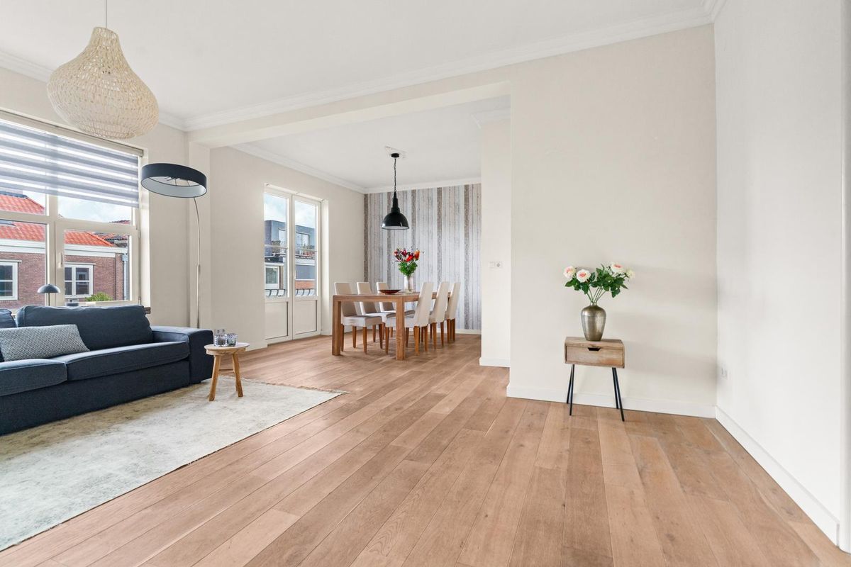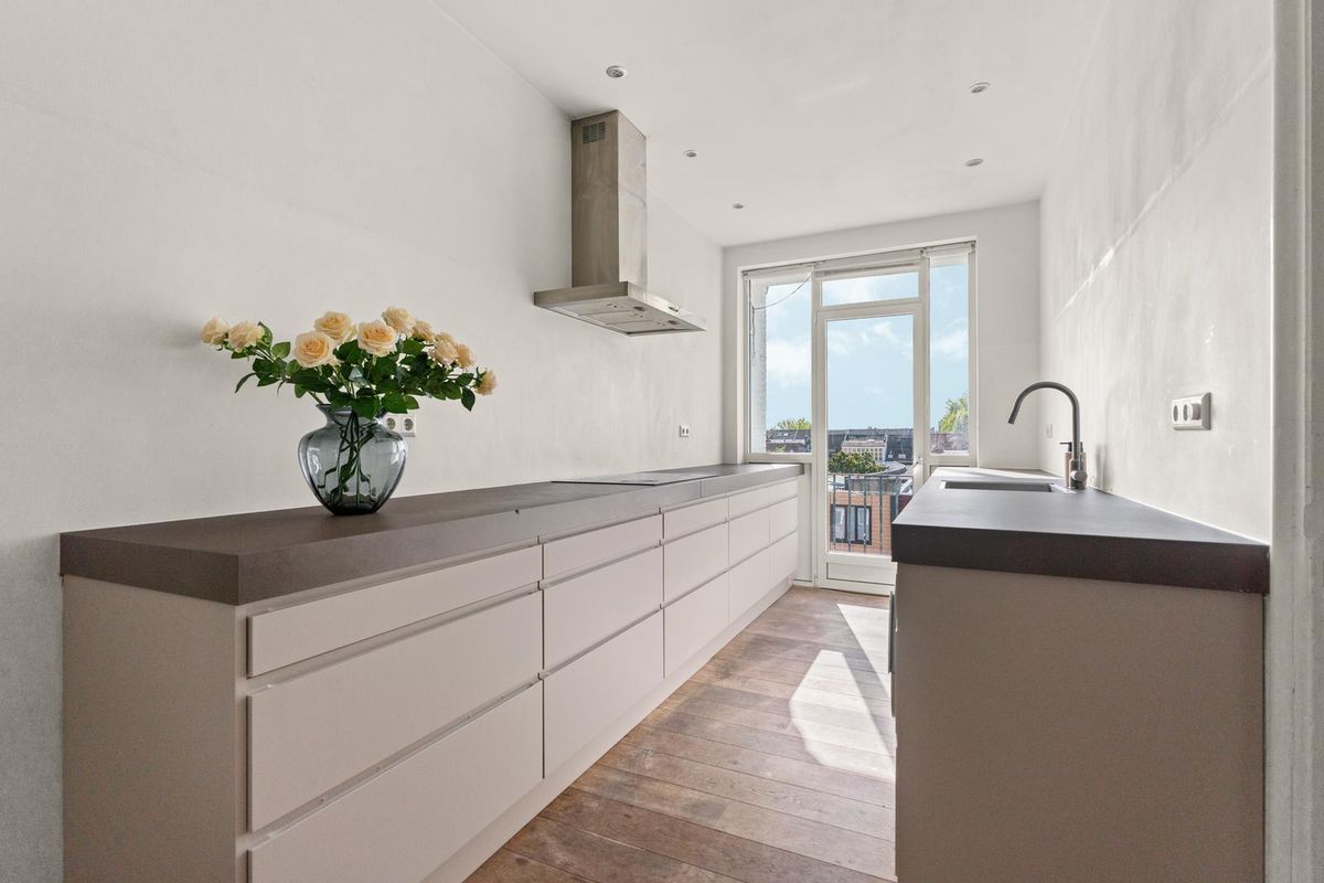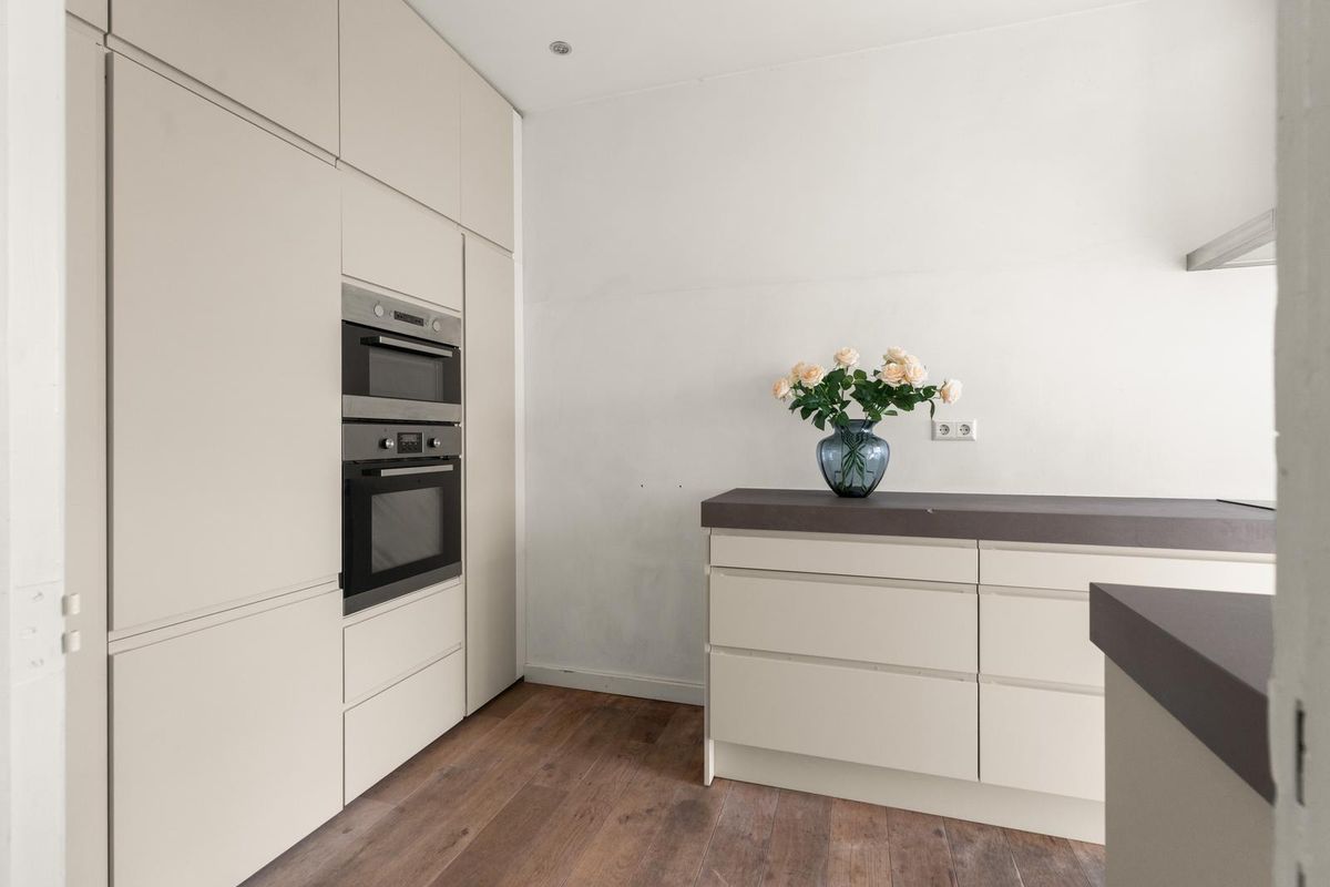 Appartement 3e verdieping: entree, hal met prachtig daklicht, meterkast, bergkast, royale woonkamer met eiken vloerdelen, glad stucwerk, vaste kasten, dubbele deuren naar een Frans balkon en heerlijke lichtinval. De keuken is in 2025 voorzien van nieuwe kasten en uitgerust met Miele inbouwapparatuur, waaronder inductiekookplaat, afzuigschouw, combioven, oven, vriezer XXL, koelkast XXL & vaatwasser. De keuken biedt toegang tot de loggia op het zuidoosten.