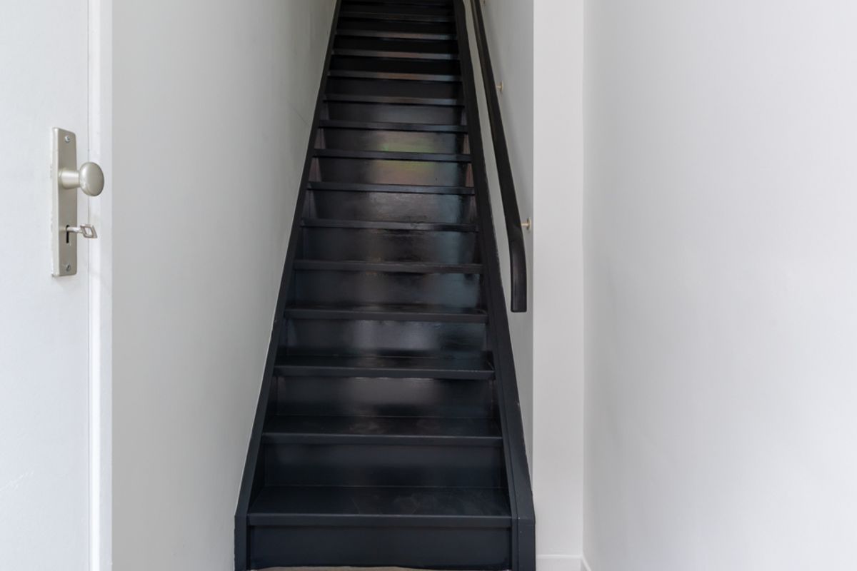 Entree, hal met meterkast en trapopgang naar de eerste verdieping.