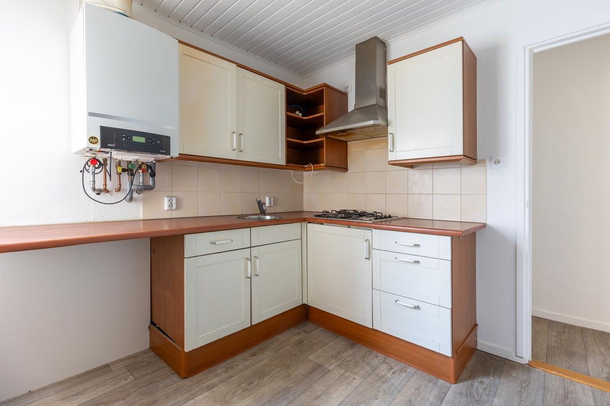 Gesloten keuken (4.19*3.30m) uitgevoerd in een hoekopstelling met de navolgende apparatuur; 4-pits gaskookplaat, afzuigkap en koelkast. Tevens is hier de standplaats van de cv-installatie en zijn er de aansluitpunten voor witgoedapparatuur.