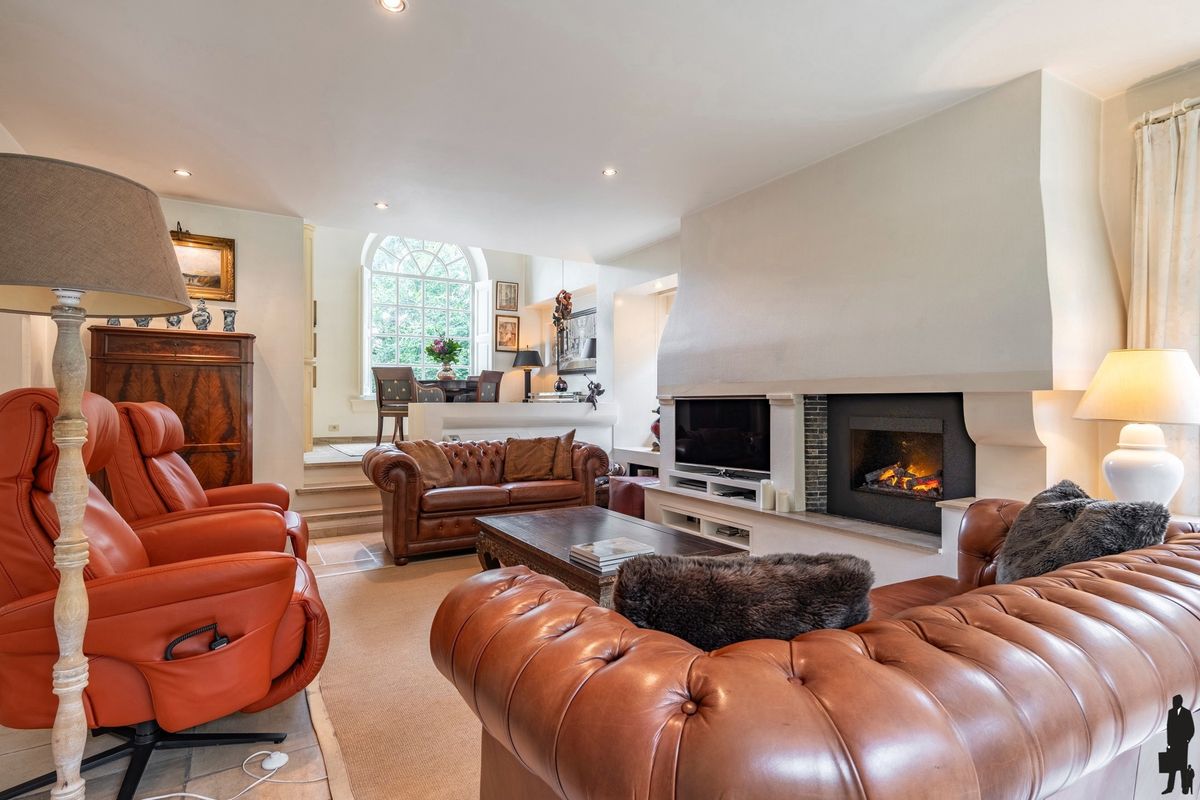 De zithoek is centraal gesitueerd bij de open haard en televisie, terwijl de bibliotheek uitkijkt over de oprit en de eetkamer een prachtig zicht heeft op de achtertuin. De ruimte is speels ingedeeld en uitgerust met stijlvolle maatwerkkasten en airconditioning.