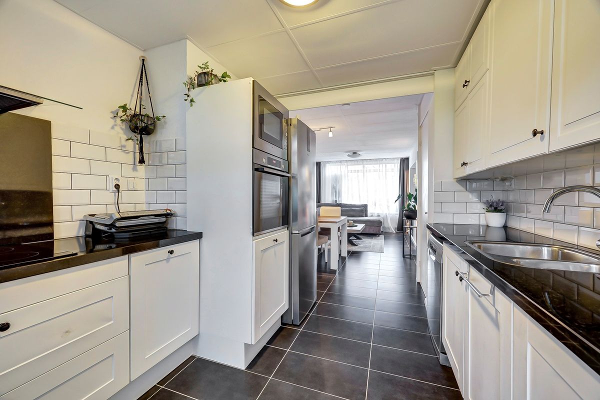 Gesloten portiek, entree op de eerste bouwlaag, in de hele woning ligt prachtige ceramische antracietkleurige plavuizen. Slaapkamer voor, tweede slaapkamer achter. Modern zwevend toilet voorzien van fontein. Ruime woonkamer voor. Overloop met meterkast. Keuken voorzien van stenen keukenblok met inbouwapparatuur waaronder afzuigkap, 4 pits inductiekookplaat, vaatwasser, oven en koel-vriescombinatie. Moderne badkamer voorzien van wasmachine en droger aansluiting, ruime inloopdouche en wastafel meubel. Een Vaillant HR-combiketel uit bouwjaar 2024, via wifi vanaf afstand te bedienen. Balkon aan de achter zijde.