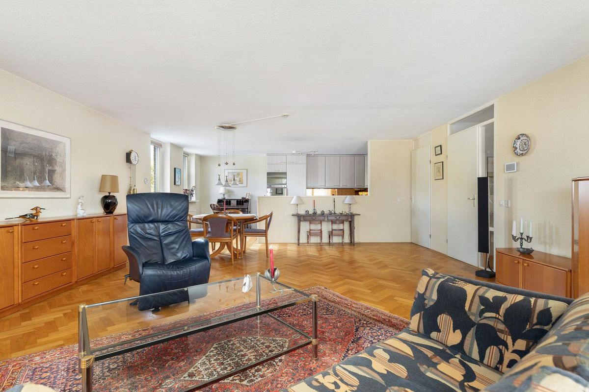 Vrijwel het gehele appartement is afgewerkt met een prachtige visgraat parketvloer met wengé bies, wat het geheel een luxe en warme uitstraling geeft.
