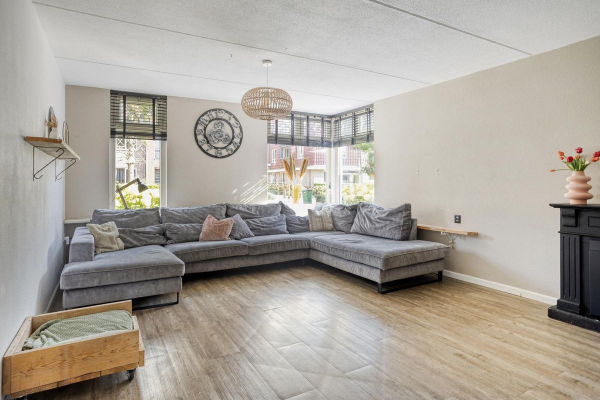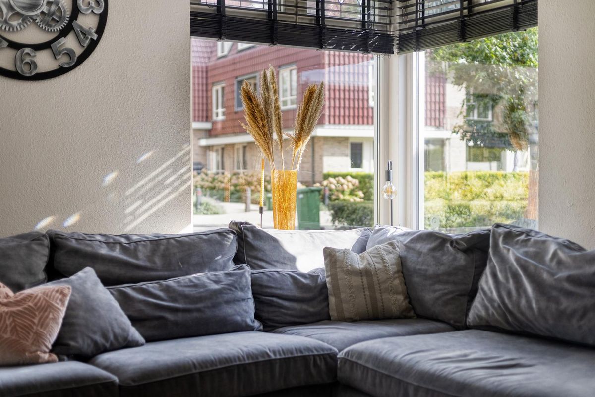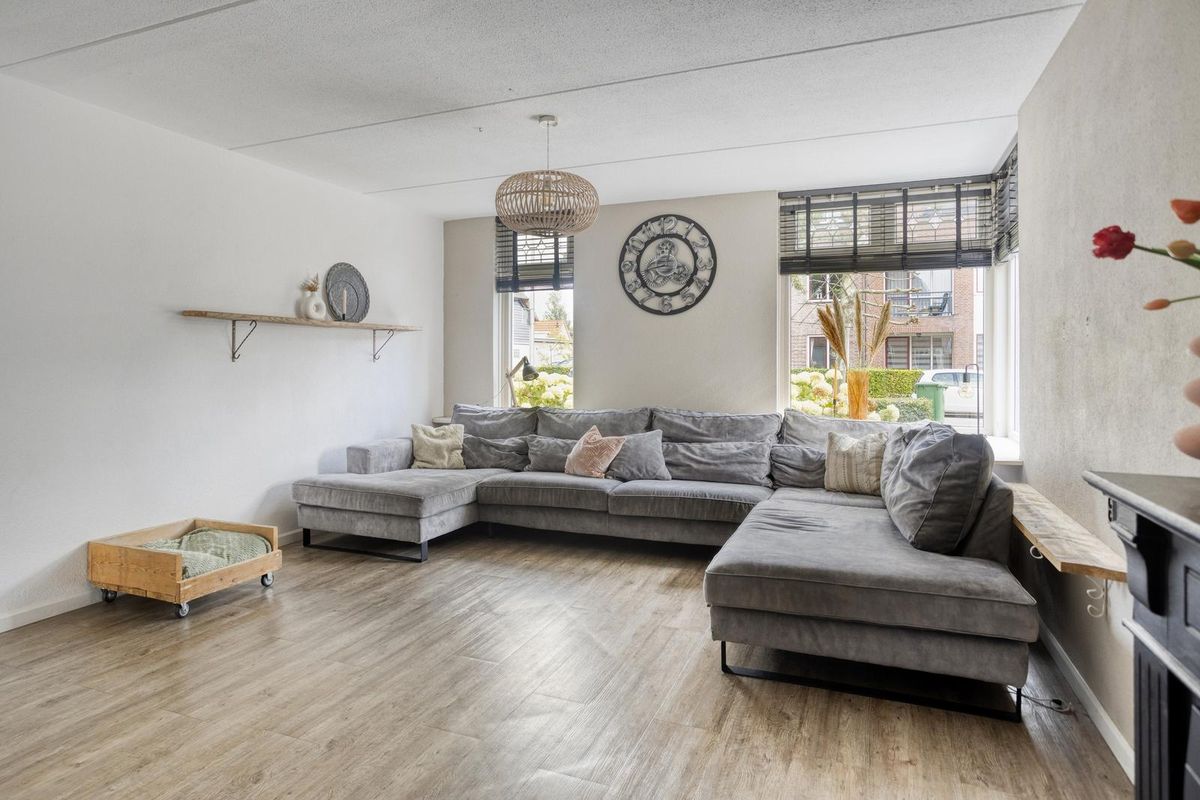 De ruime woonkamer is aan de voorzijde van de woning gesitueerd. Door de speelse raampartijen in de voor- en zijgevel van de woning is er mooi zicht over de Stenenkamerstraat. De woonkamer is ruim opgezet met ruimte voor een grote zithoek en eventueel een extra thuiswerk/studeerhoek. Vanuit de woonkamer is tevens een handige provisie/trapkast te bereiken.