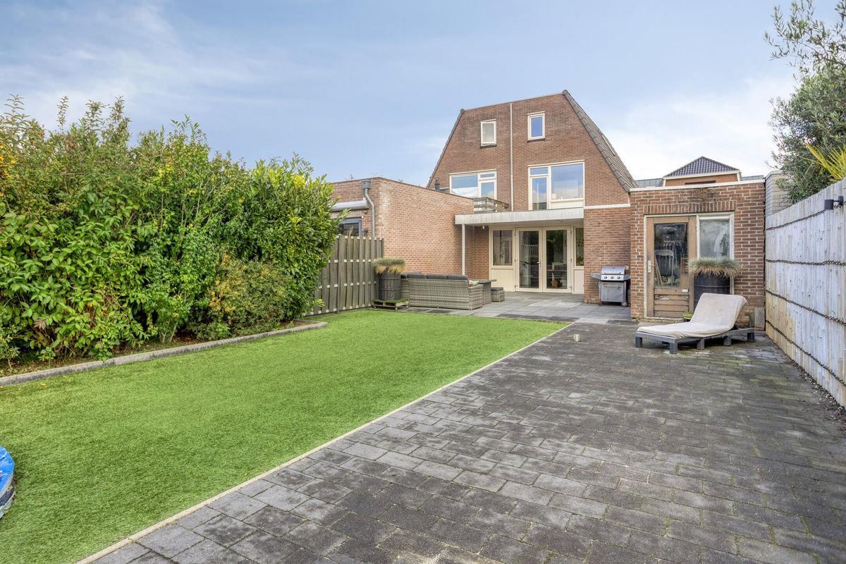 Vanuit de woonkeuken loop je zo de diepe, zonnige achtertuin in. Doordat de tuin gelegen is op het zuidwesten, geniet je hier een groot gedeelte van de dag van de zon. Tevens heeft de achtertuin veel privacy, waardoor het hier heerlijk buiten zitten is. Aan de achterzijde van de woning is een groot zonneterras, ook aan de achterzijde van de tuin is een fijn zonneterras gerealiseerd. De tuin is onderhoudsvriendelijk aangelegd met kunstgazon en een grote border met diverse struiken. Door de diepte van circa 19,50 meter heeft de achtertuin veel mogelijkheden, zoals het realiseren van een moestuin of het plaatsen van speeltoestellen voor de kinderen.
