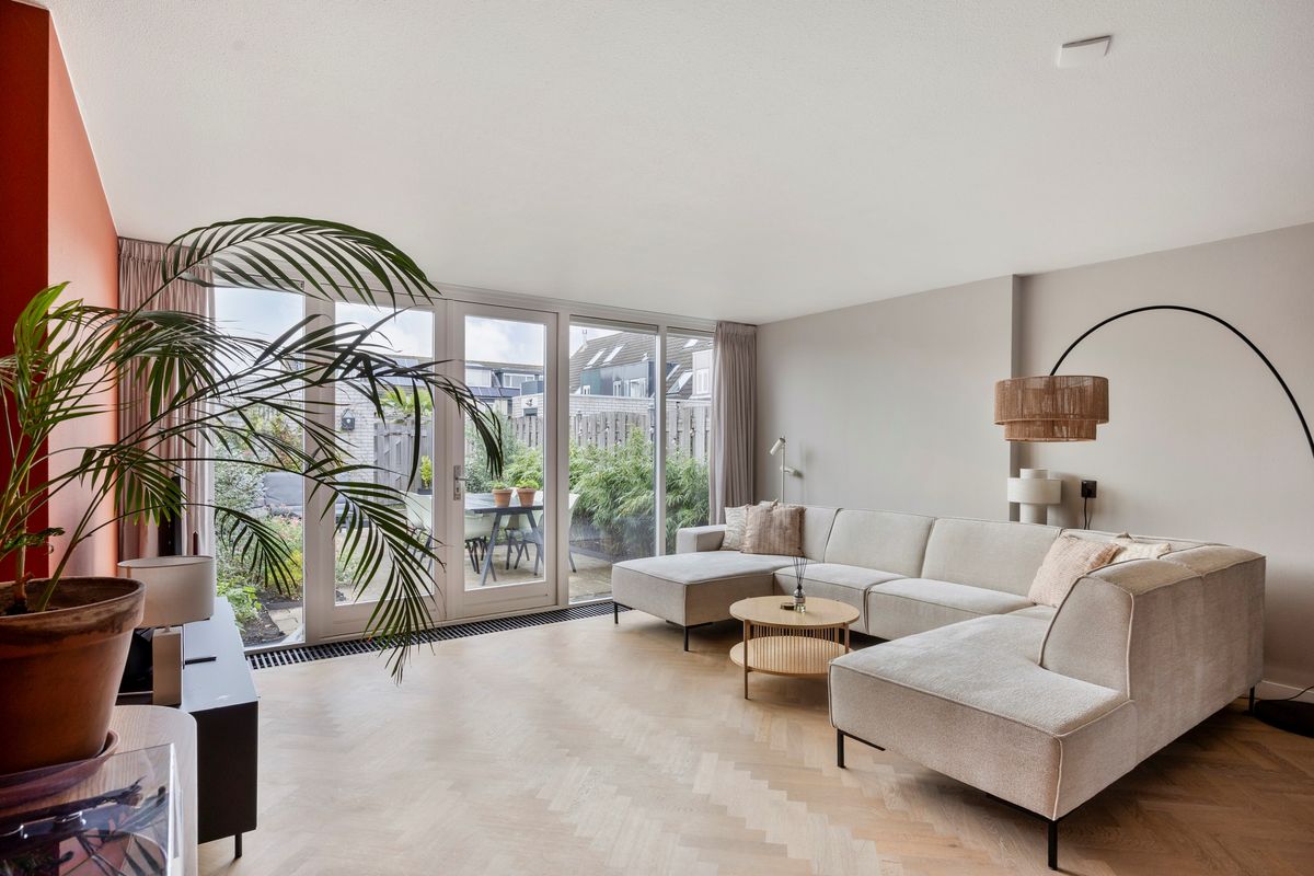 Entree woning, hal met meterkast (2024)/stadsverwarming, trapkast en een moderne toiletruimte met hangend closet + fonteintje. Uitgebouwde tuingerichte woonkamer met fraaie houten visgraat vloer inclusief bies en een open keuken. Door de grote raampartij geniet u van een lichte woonkamer met optimaal uitzicht op de achtertuin. De recentelijk (2024) vernieuwde keuken is gelegen aan de voorzijde van de woning en is o.a. voorzien van een inductiekookplaat, afzuigkap, Quooker en een vaatwasser. De apparatenkast met koelkast, vriezer en combi oven maakt het geheel compleet. Via dubbele openslaande deuren bereikt u de diepe achtertuin met stenen berging en achterom. Deze aantrekkelijke achtertuin is gelegen op het noordoosten. Door z'n afmeting en gunstige (vrije) ligging is deze tuin heerlijk zonnig. Handig om te weten: direct achter de woning bevindt zich extra parkeergelegenheid.