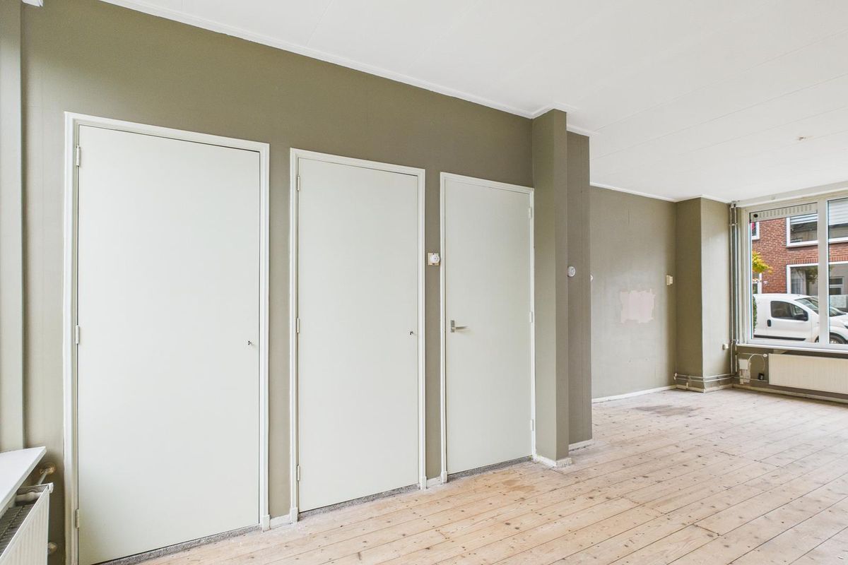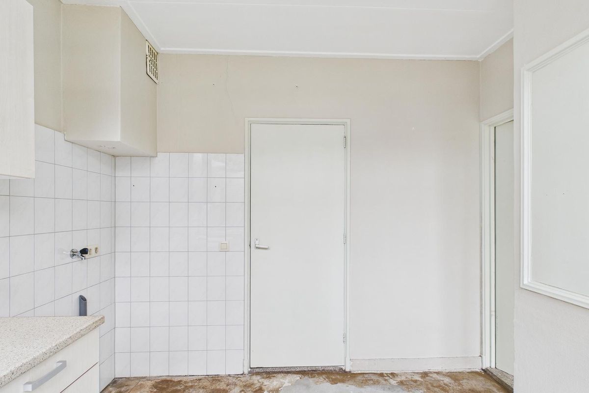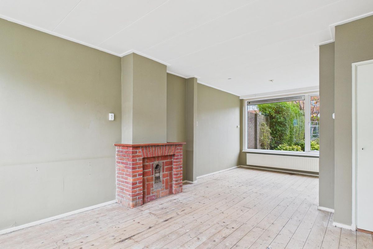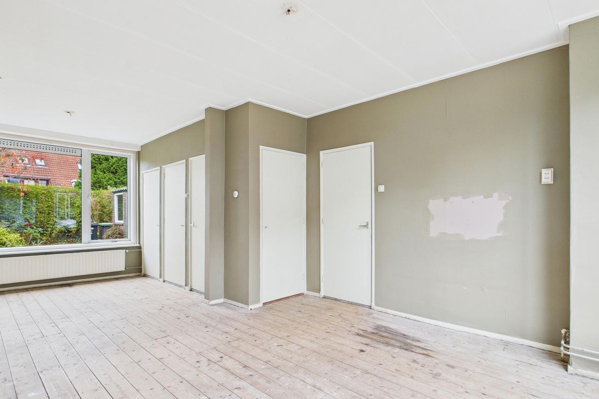 Hal met meterkast, trapopgang, trapkast en een eenvoudig toilet. Lichte doorzon woonkamer met vaste kastruimte en toegang tot de dichte keuken. De keuken is zowel vanuit de woonkamer als vanuit de hal bereikbaar en beschikt over vaste kasten, een eenvoudig keukenblok en een achterdeur naar de tuin.